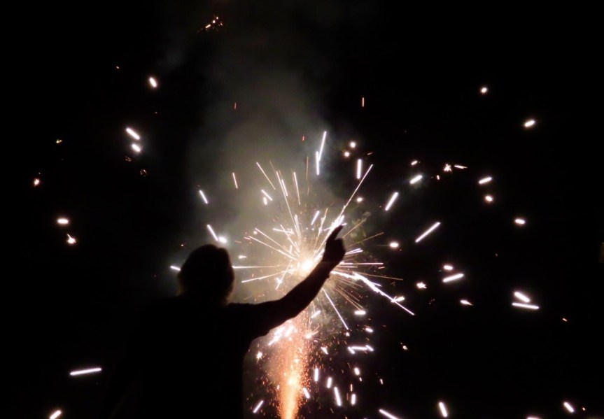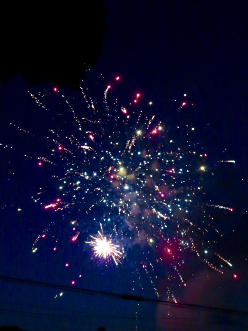 Rhode Island recently legalized fireworks and I remembered the bombings from last year so this time around I figured we might as well join them. I bought an assortment of items at one of the ubiquitous tents set up along the roadside and brought them home.The neighbors to the right informed me that you have to go to New Hampshire to get the real deal so while my little sparky shower fireworks were fizzing away in the fire pit they had full on commercial grade explosions of color and brilliance going off in the sky overhead. I’d say “watch Carole” and light a towering shower of sparks only to be outgunned with a dazzling display from Pete’s seemingly endless artillery. It was awesome. There were other neighbors nearby that were going all out also. A Fourth of July show equal to Legoland without the drive and without the traffic. Carole was lit up like a kid enjoying the spectacle. When we finished off the pyrotechnics we adjourned inside and watched the Macy’s fireworks from New York until it was time to call it a night.