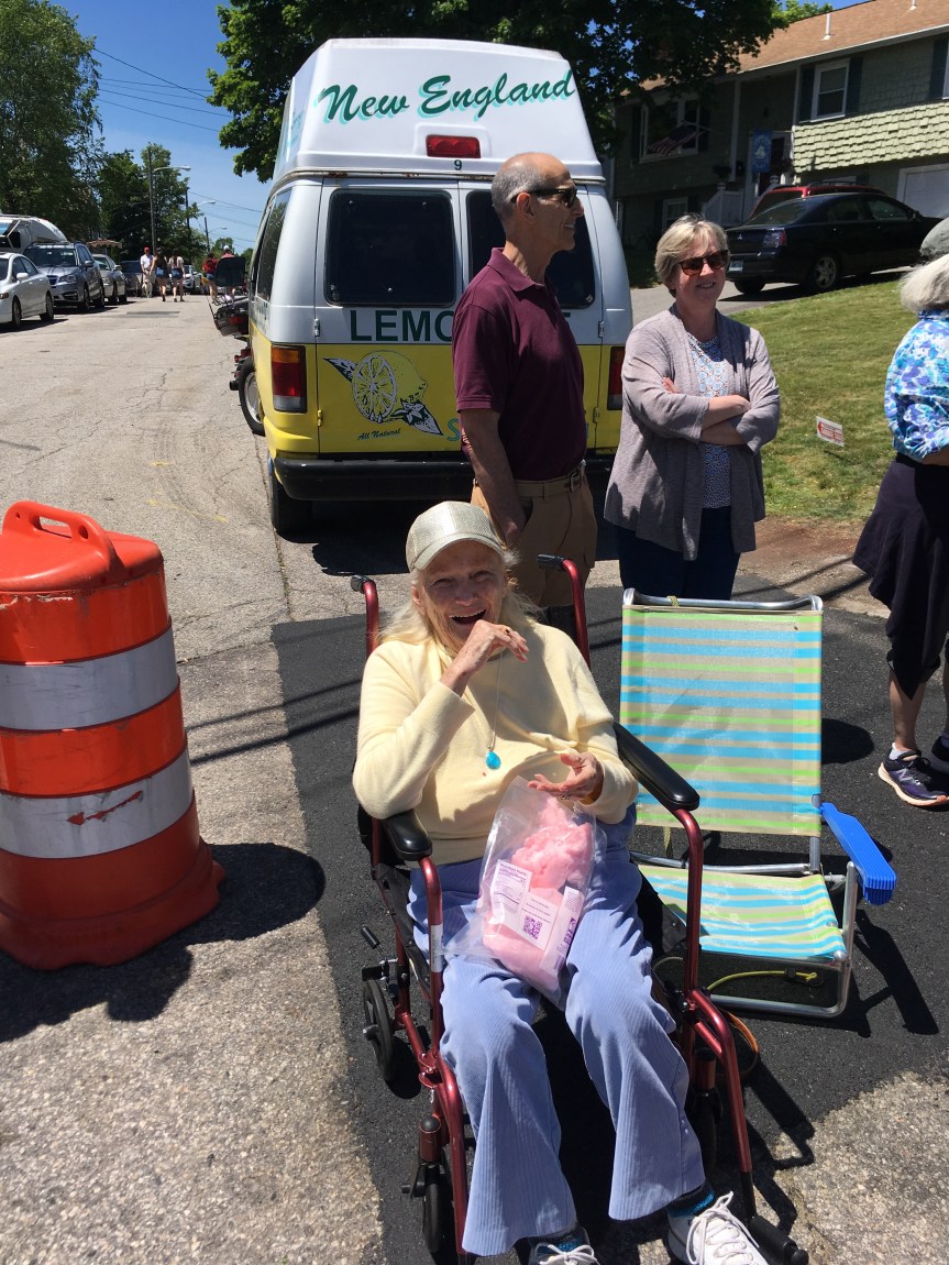 Carole is always up for a chance to get out of the house and out into the world at large. PJ took her to the Gaspee Day parade down in Pawtuxet back in June. They wheeled the chair down to the parade route and sang all of the patriotic tunes along with the marching bands rhythmically moving along Narragansett Parkway. Carole may falter a step occasionally in the short term memory department but she remembered every word to all of the American favorites.
