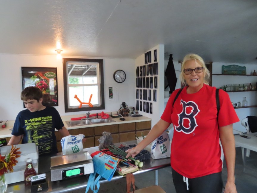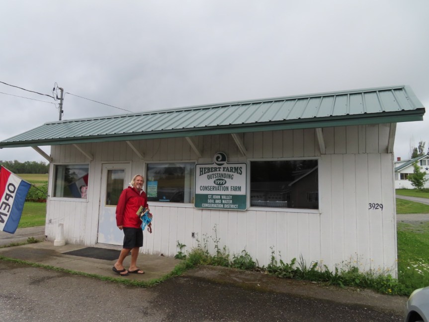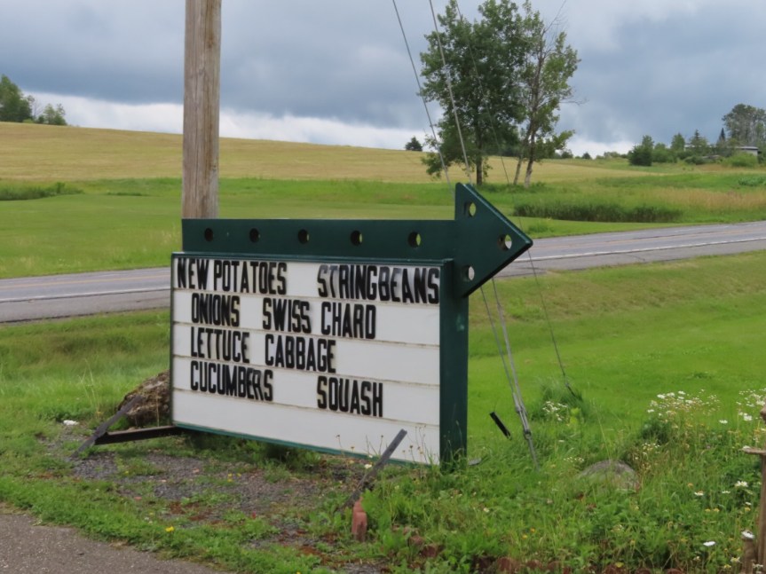 We returned to Lance and Laura’s where we parked the RV over near the forest on the side of the house. We leveled it up then took a quick drive over to Hebert’s roadside farm stand where we picked up a passel of blueberries to make a short cake for the birthday gig. We grabbed a bunch of new potatoes and a few other vegetables that they had on offer. They have been a favorite in the area for as long as folks can remember. The kid manning the stand was sharp as a tack and kept up a steady dialogue as he packaged up our purchases.