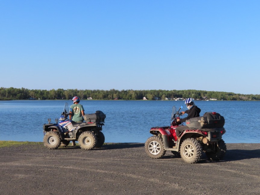 Back at the house, it was definitely time for a quick nap. We rested up then joined Jim for a ATV ride out to Long Lake for a final gander at the views of the mountains across the lake. The trail out to Martin’s store is really scenic going tightly through pretty stands of trees. We went slowly past the area where Kami and Rachel had seen a moose earlier in the day, but no luck for us. We’ll have to be content with their moose photo and keep searching up in Canada.