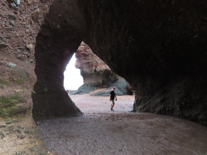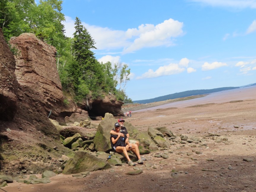 On the drive home we took the scenic route out towards Harvey and Cape Enrage. We drove the potholed side road to the cape with an obnoxious Québécois inches from our bumper. Our first Canadian tailgater. The beach was windy and when we drove up to the viewpoint, they wanted a fee to have a peek. We were already done with fees from Hopewell so we opted out and headed home. The views along the road are spectacular enough and free for the taking. Cali was happy to see us and after a walk, we all had a good nap then we were off for the return trip to see the 6:30 high tide back at Hopewell.