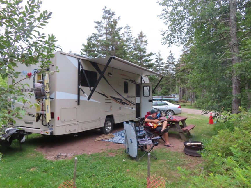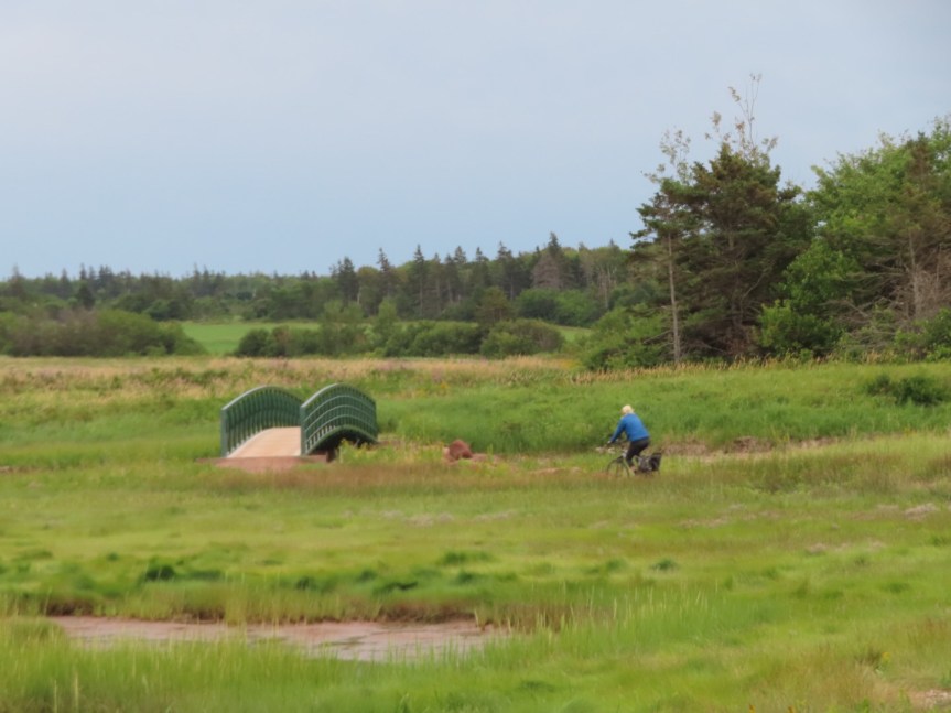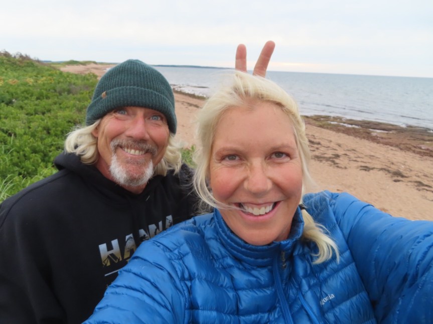 Back at camp, it was a domestic day. I washed our clothes over at the laundry hut then we relaxed on the porch. After we did a little house upkeep, we drove over to Samuel’s coffee shop in a touristy compound in Cavendish with a fake Main Street lined with shops. Our Verizon international internet has totally sucked with speeds so slow it’s like having a modem in the 1990s. The laughable part is that after about 5 minutes of painfully slow internet that can’t even upload a photo, a notice comes on saying that you’ve exceeded your 0.5 gigs daily allowance of “high speed” internet. Canada take a lesson from Mexico and give us fast internet. Anyway, I’m done ranting. I only meant to say we went to the cafe for internet and also, as it turned out, one of the best chicken pesto sandwiches in the northeast.
