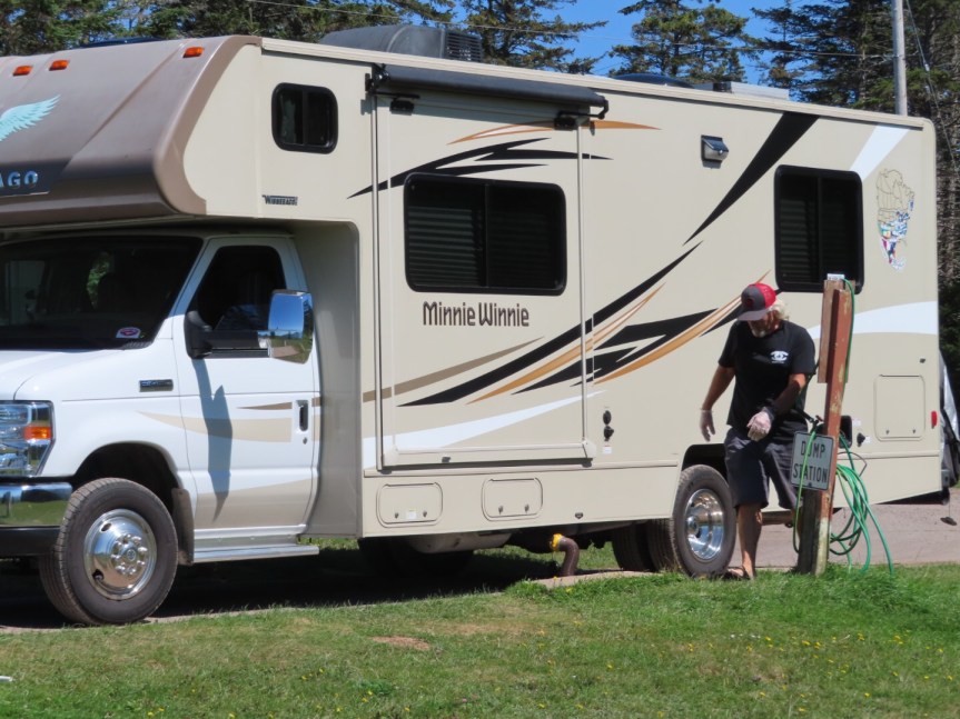 Cali was still hurting this morning and needing a little extra care. She had a hard time being still and had us out walking several times in the wee hours. PJ was out before the sun wandering around on the dewey grass watching the purple sky. We caught a few more zzz’s then got the camp ready to roll. Our destination today is a one night stand at a little rural RV Park half way to the national park on the way towards Quebec.