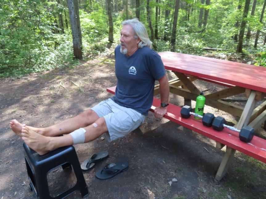 Lots of lounging and reading throughout the day. Any neighbors close to us had gone their way by the eleven a.m. checkout so I pulled out my flute and practiced under the trees. In the afternoon we went for a bike ride through the camp and down the path along the river for short ways. PJ’s right leg is a little tweaked so no hard cardio today.