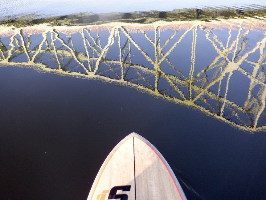 Friday warmed up nicely in the afternoon, so we rode our bikes down the river walk then into town to have a peek around. Not much to it. Just an old downtown with some cool brick buildings and old homes. We swung back around to the RV park and later in the evening the river grew calm and glassy so I grabbed the paddle board and hit the water.