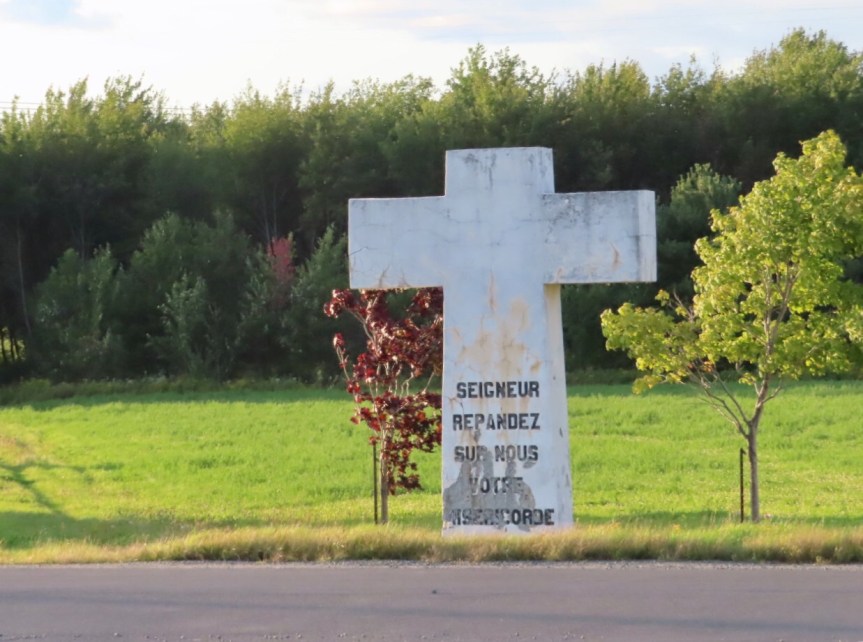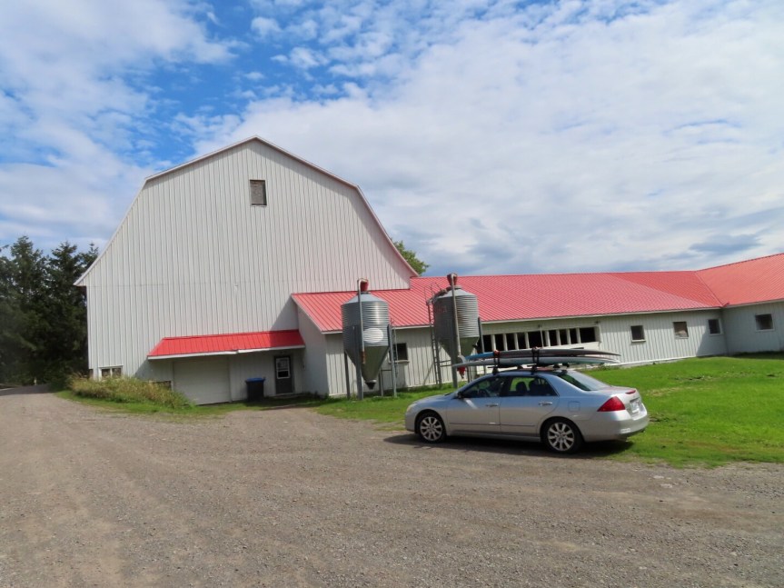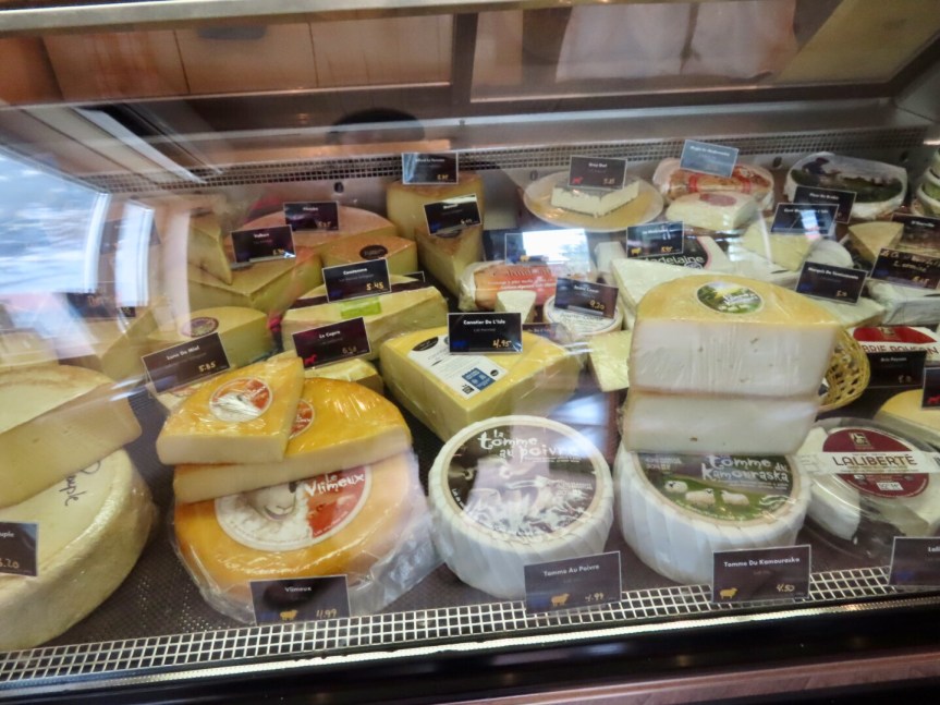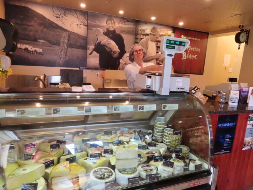 It was still rainy and misty as we started the day. We did our morning ablutions and hit the road through the small towns and farm country outside of Quebec City. For one of our breaks during the ride, I followed a roadside advertisement to a rustic cheese factory on a little farm off the highway. PJ got depressed because the goats were kept in a large barn and didn’t want anything more to do with the stop. I went in and talked to the gal in the little shop and bought two small chunks of their specialty cheese made on site. Then it was back on the Canada 20 for the rest of the way to Transit Camping in Lévis.