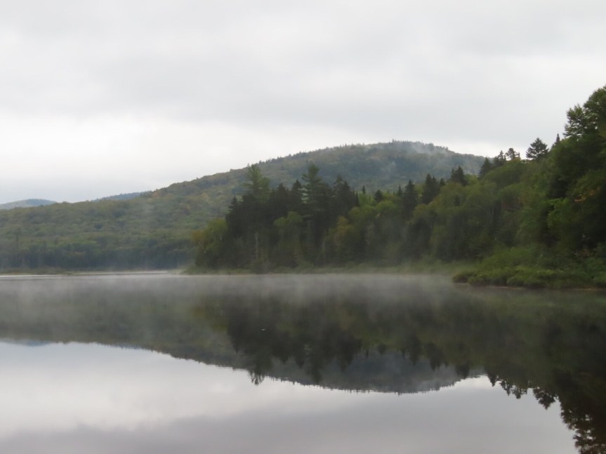 We walked down the portage trail that bypasses a shallow stream between portions of the lake and came out at the another smaller body of water. It was near dark and the rain returned so we hoofed it back up to camp and relaxed inside.
