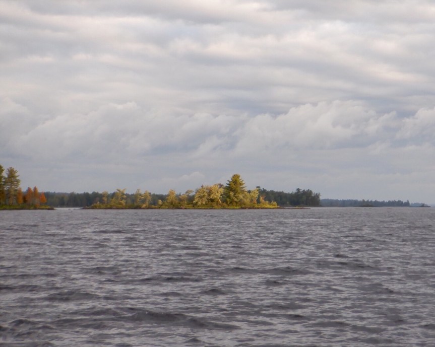We got our traveling minstrel show loaded up and started driving at about eleven west towards North Bay. I’m starting to get a bit jaded driving day after day through beautiful mixed forest with the deciduous trees getting more colorful each day. There’s water everywhere; rivers, lakes, ponds and streams. I have to keep present and appreciate the wonder I’m driving through and not take it for granted. We were both unusually tired today, so we stopped half way at a rest stop and took a short nap. The wind really kicked up today and blew me around like a sail, doing its best to push me out of my lane. In North Bay, I found a Canadian Tire store and returned the paddle I bought the other day.