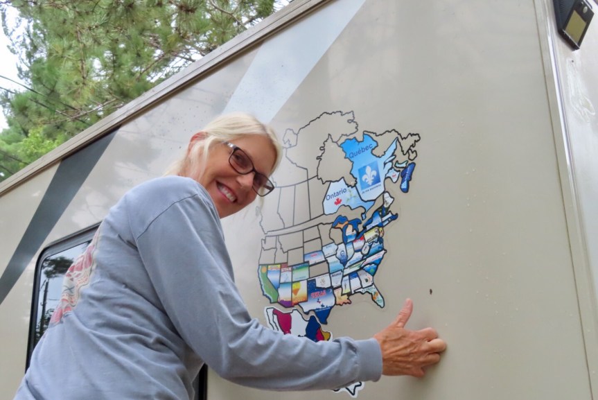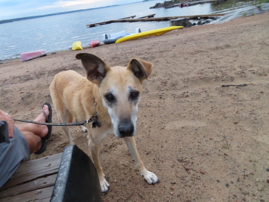 We arrived in Sturgeon Falls before three, got checked in, then parked the rig up at the last spot on the end right on the river next to the boat ramp. The Sturgeon River flows three more kilometers down from here to Nipissing Lake. The lake is big, almost 30 miles long and about half that wide. Hopefully, the wind will give us a break tomorrow and we can paddle down and check it out. Another chilly, windy afternoon that kept us mostly indoors. Things are peaceful here. I know it’s good when Cali gives it her seal of approval. She’s always had an uncanny ability to sense the vibe of a place and I pay attention when somewhere or somebody skeeves her out because she’s usually right about them. PJ spent some phone time with her gals back home while I read and lounged about. Comfortable campground.