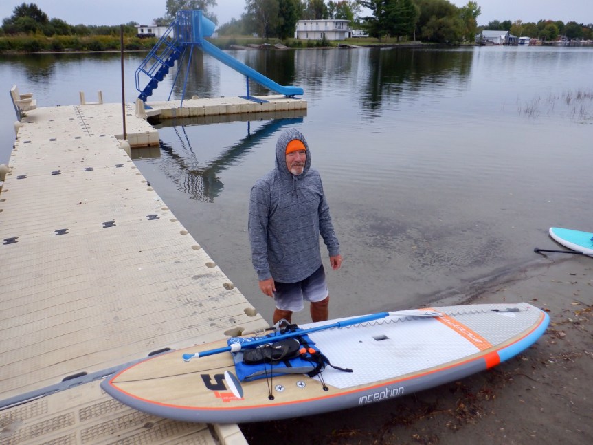 We were up for another sunrise. This time over the Sturgeon River next to our campsite. The wind was light so getting a semi-early start on paddling down the river seemed like a good idea. The weather was a little chilly but we set out around nine a.m. after fortifying ourselves with some hot beverage. We launched by the swim slide and paddled down the glassy waters heading the two miles plus to the mouth of the river. A variety of homes, cabins and trailer sites peeked out from between the trees here and there. Old rotting docks and boat houses in disrepair gave a rustic vibe to the relaxing paddle.