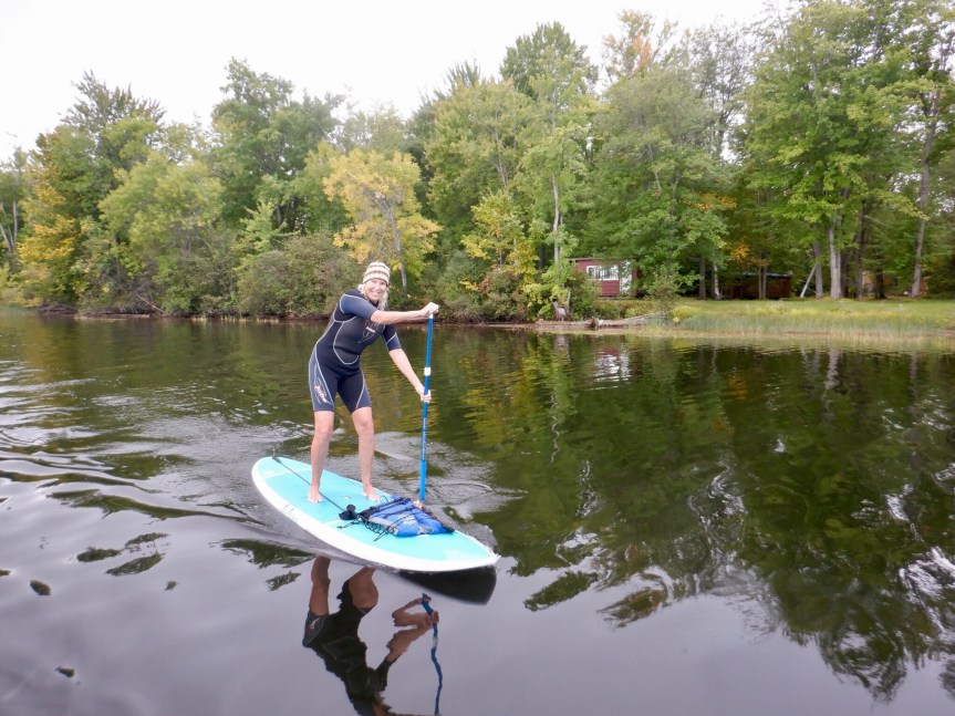 Once safe inside the calmer confines of the river, we cruised a bit more and since we were heating up inside our wetsuits, a jump into the water was proscribed to help us cool down. Whoa, that water is cold! A definite wake up. After that we were motivated to paddle a bit more vigorously. A three hour journey in the beautiful fall foliage.