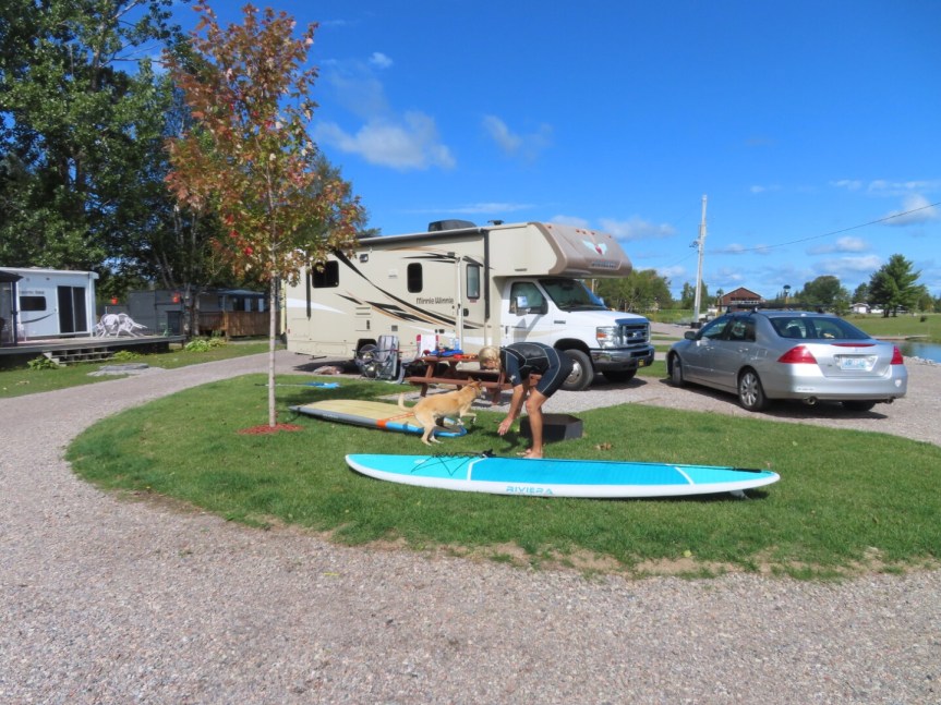 I got busy on some projects. I tightened the screen door with some larger screws in the hinge and replaced the anode rod in the water heater. Lots of crud and build up. The old rod was nearly spent, so it was a timely bit of maintenance. I kept planning for a nap but never seemed to get there. PJ did laundry then we drove into town to grocery shop only to find all of the grocers closed at six on Sundays. We treated ourselves to Beyond Burgers at the A&W drive in. When was the last time I had an A&W root beer? I couldn’t tell you, but it went down easy. Quiet night at Sturgeon Falls.