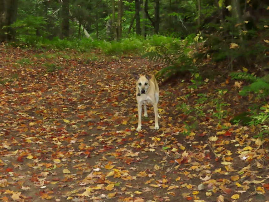 Cali was up for some exercise this morning and wanted to scout the area surrounding the campground. Who am I to say no when the old girl gets the urge to be active. We went down a leaf covered trail that led to a small meadow where she was able to run off leash. About a half an hour was enough time out for Cali and when it’s time to turn for home she lets you know. It’s like the old mule in the movies that puts on the breaks, digs in the heels and refuses to budge another step forward no matter how much you pull the reins. We returned home where she was content to lay back down and nap away the morning while I did some work online.