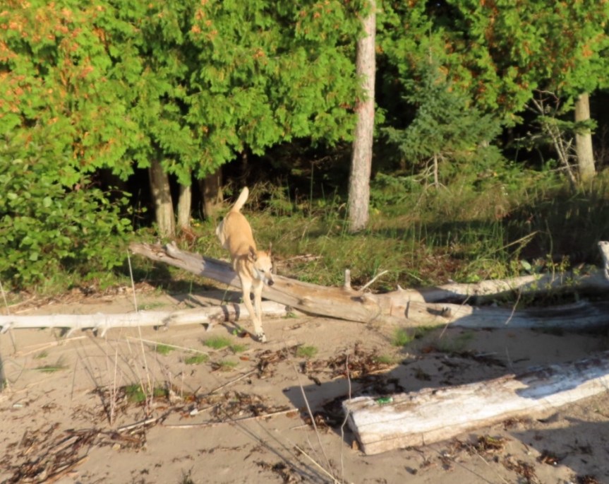 I’m not sure if it was from drinking the water back in St. Augustine but some days it sure seems like Cali has figured out the formula for the Fountain of Youth. We walked down the beach away from camp this morning when she tore off into the woods then came flying back out like a deer. She did the dare you to chase me type antics then ripped back over to our camp. She was happy to get her day started here on Green Bay. Hundreds of butterflies flew by overhead on their way to Mexico as we strolled home along the sand.