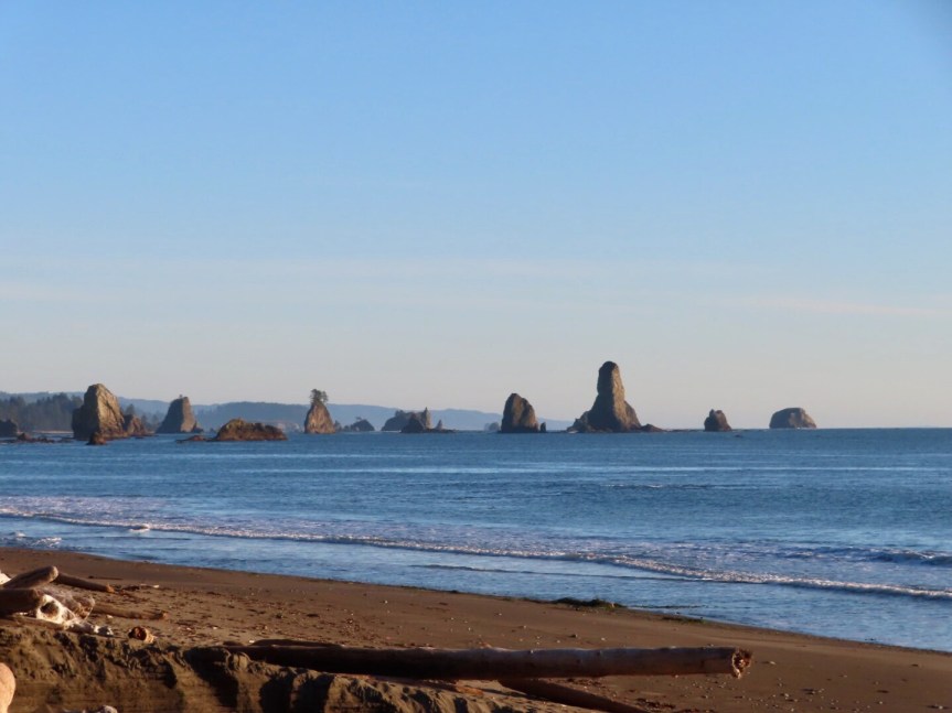 We debated taking off this morning, but decided to stick around and enjoy another day of beauty at La Push. Other than laundry, it was a day to relax. As the ice defrosted from the picnic tables, I took Cali for a stroll around the resort. We met our neighbors and Cali got a butt sniff from their huskies. We hung around the beach as things warmed up eating lunch while watching the breakers roll in.