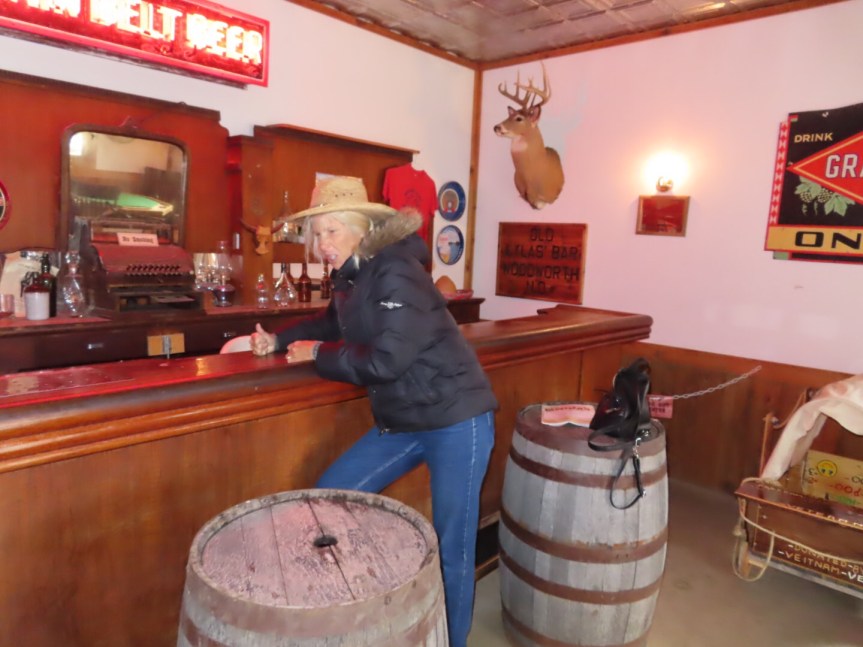 Our next rest stop was at the Buffalo Museum in Jamestown. We wandered around the old western village for a little while checking out the exhibits and climbing around on the old train cars. PJ got herself a train ticket and was looking to ride out on the rails. But not before a game of ten card stud and a shot of whiskey in the saloon. My fate wasn’t as rosy. Seems the sheriff that’s been doggin’ my trail finally caught up with the aging outlaw and put him in a pine box.