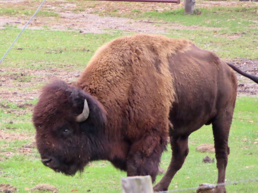 No visit to Jamestown would be complete without a stop at the giant buffalo. We looked him over from head to toe then found a few of the real McCoys and got to see the bison up close. Cali was unimpressed and just wanted to run back to the RV and get to moving down the road.
