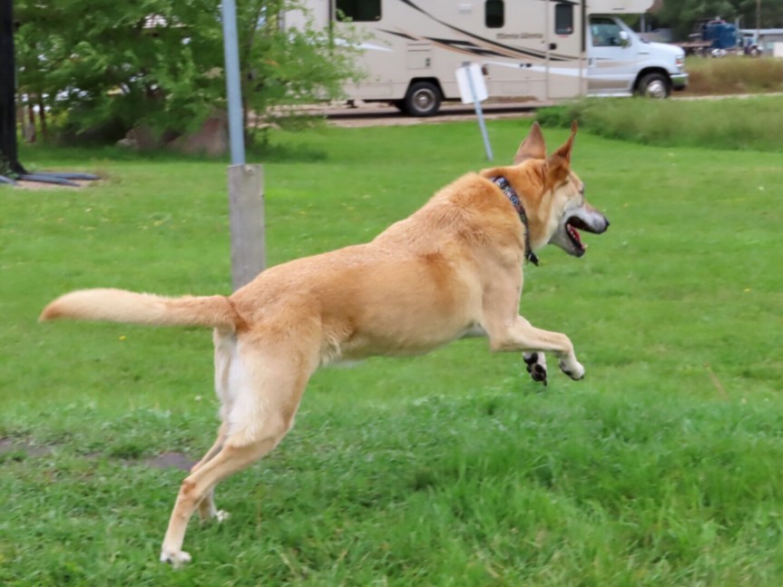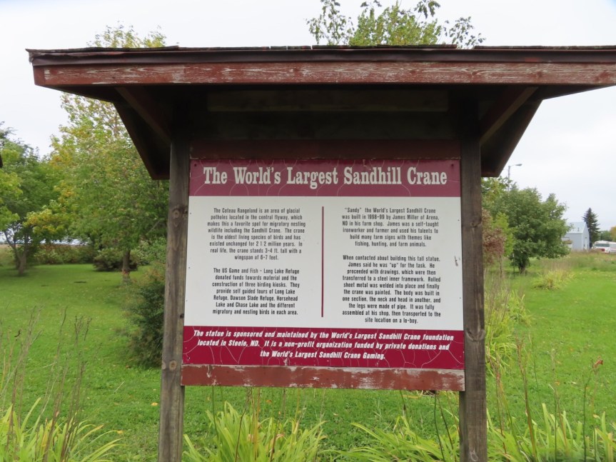 We had one more potty break planned an hour or so further down the pike at Sandy, the world’s largest sand hill crane. For PJ and I, the funky sheet metal bird wasn’t all that special but for some reason, this was Cali’s favorite stop. She must have snuck one of the Monster energy drinks out of the fridge when I wasn’t looking because she was just ripping around the grassy field where the big fowl was on display. We enjoyed it as much as she did. From there, it was a few short miles down to the one night stop we had lined up in Bismarck. With all of our goofing around, it was close to six when we showed up.