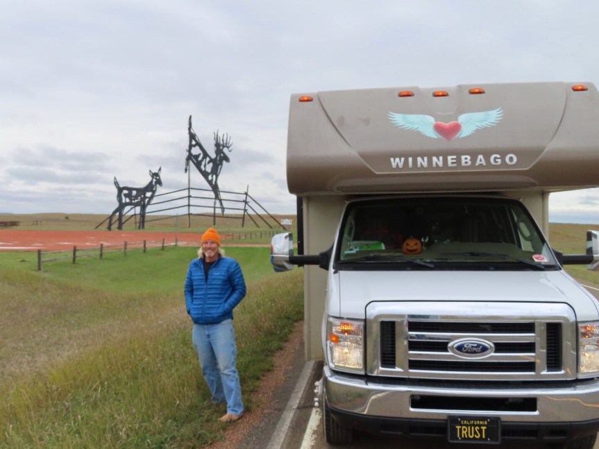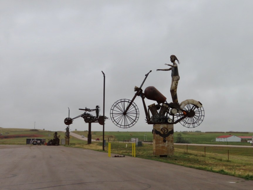 It’s going to be a long trek today so we got an early start and exited out through the dreary monotone gray streets of Bismarck. We were taking a slight detour to take a ride down the “enchanted highway”. The GPS estimated six and half hours of driving but we know that with us it will be considerably longer by the time we get to our destination of Custer State Park in South Dakota.