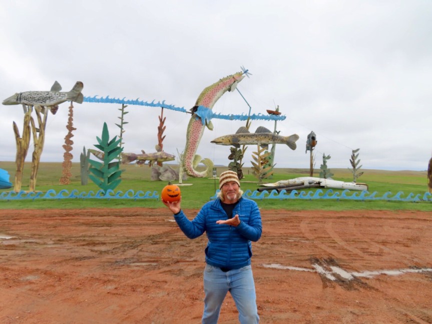 Twenty or so years back, a local resident was trying to put his area of North Dakota on the map. Farming was in a slump and there was no tourism or other enterprises in the open range. He began erecting a series of giant metal art installations on the 30 mile stretch between the main highway and his home base in Regent. Gary Greff saw it as a way to get people to pass through the area and it has worked to an extent.