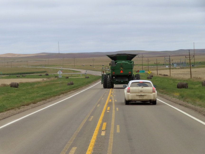 Drizzle and occasional showers followed us the whole way. We spent some time stopping and being touristy on the enchanted highway but we were pretty much all business after that pounding out the miles through the flat farmlands and then into the rolling hills that the Dakotas are famous for. Sunflowers and corn seem to be the main crops or at least the only ones still going at this time of year although they are looking like they are finishing up for the season also.