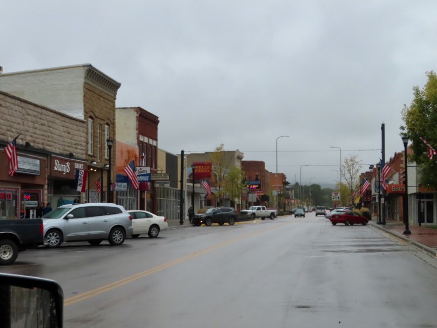 We did regular breaks about every hour or so to let Cali stretch her legs and for us to recycle the endless flow of caffeinated beverages that are the staple of the drive. Our only other little break was a quick stop in the parking area of Full Throttle Saloon in Sturgis to see where all the biker action takes place during the summer event. It was so dead on a desolate Monday in October that the owner came out to the parking lot to try and lure us in. But we had miles to cover and the day was slipping away.