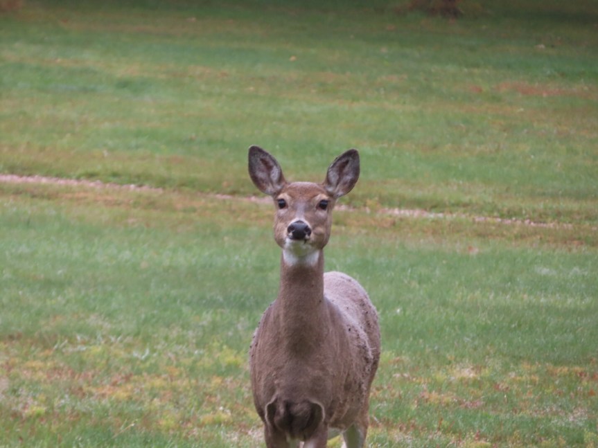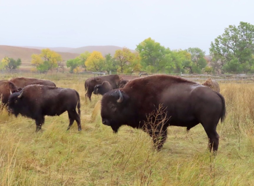 It was recommended that we rise early to drive the Wildlife Loop so we did our best to do just that. I say did our best because it was 7:30 by the time we got rolling. Some deer were grazing as we entered the loop but not much else. We drove along for a while not spotting much of anything but a few piles of buffalo dung and an antelope way off in the distance. They had held the annual round up of the bison herd a week before and auctioned off a portion to maintain a sustainable number. We were wondering if the rest had gone into hiding when we crested a rise and there was the herd.