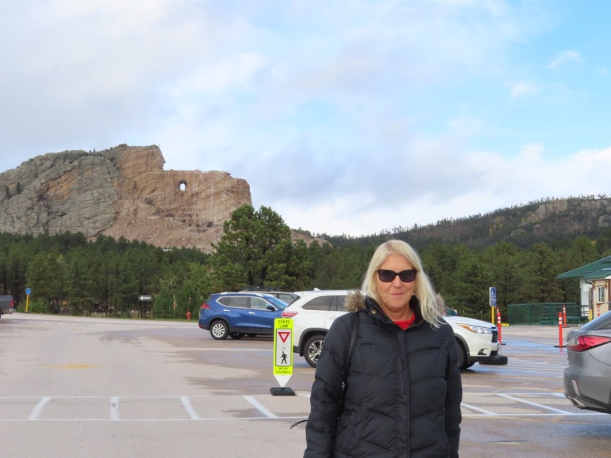 It was a good thing too. When we walked up the large walkway to get a view of the sculptures, there was nothing to see but a wall of gray shielding the granite of the black hills from being seen. We had a laugh and wandered around inside the gift shop for a while before moving down the road to the Crazy Horse monument and museum. Tomorrow’s forecast calls for sunny and clear skies so we’ll give a second chance in the morning.