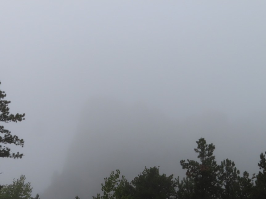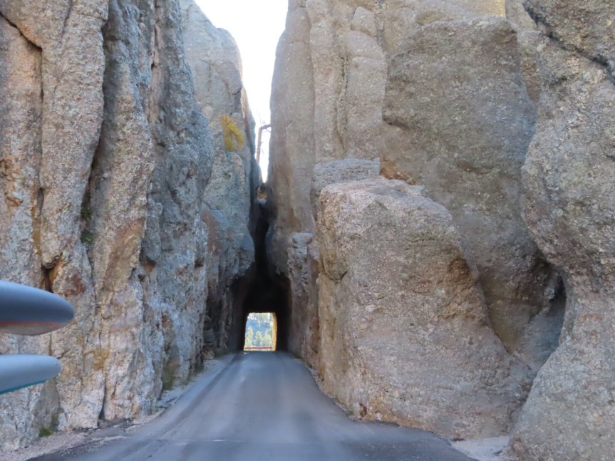 Another early start today as we had packed a lot of activity into our morning agenda and the park check out time is noon. We were headed back to Mount Rushmore today to see if we could get a glimpse of the fabled sculpture. To drive there we opted to take the sinuous narrow road known as the Needles Highway. There are three narrow and low cut, single vehicle tunnels to pass through along the route.