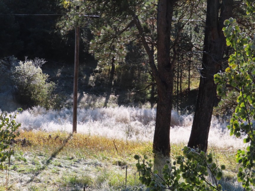 We crested a ridge and suddenly, in the distance, there appeared a line of snow covered peaks. It kind of took me by surprise. The Big Horn range lies just beyond Buffalo. We’ll be crossing over them tomorrow. We stopped at a pull out and had a break then took some photos. From there, it was a few more miles into the small city of Buffalo where we parked it up in the midst of the hunters all looking to fill their freezers come morning. There were as many orange beanies and camouflage get ups at the campground as we’d seen all day along highway 16. They say it’s not going to freeze tonight so go ahead and hook up the water. Mellow night sleep on the plains of Wyoming.