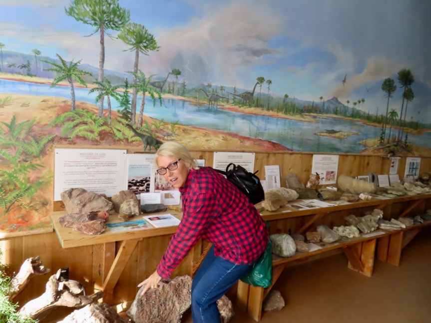 In Greybull, a really interesting lady named Lori runs the Crazy Woman boutique shop where Tommy figured PJ could find a nice long sleeved shirt. Like with everybody else in the two towns, Tommy knew Lori from either teaching her kids or just having been neighbors for so many years. We ended up buying hats, shirts and an awesome Wyoming tea mug for me. There is a small dinosaur museum across the street so we poked our noses in there and had a quick look around.