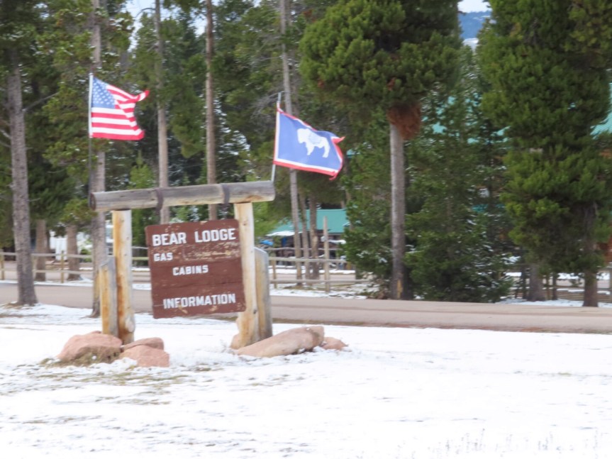 The lodge was doing a decent lunch business with the influx of hunters for the deer season. We enjoyed a good, hot meal in the rustic interior of the lodge. We sat in the bar among the giant deer heads and stuffed cougars and listened to the lively banter and cheers for football teams coming from the other tables. We got Tommy to tell us some family tales that we hadn’t heard before as we learned more of the family history and his thirty years plus teaching and coaching wrestling here in Wyoming.