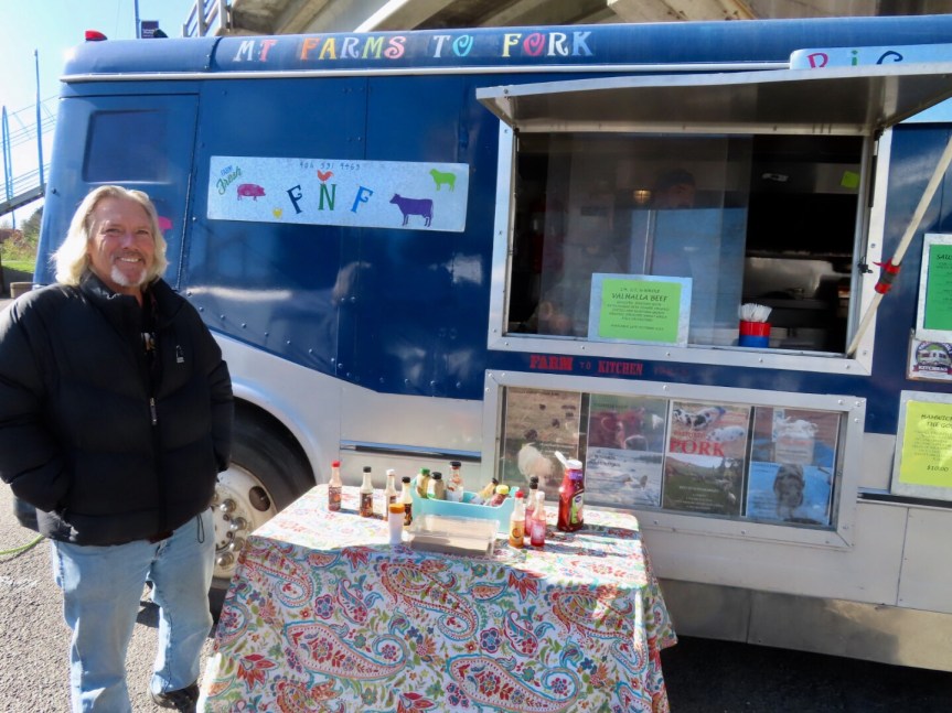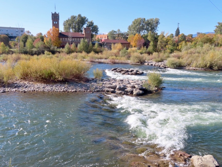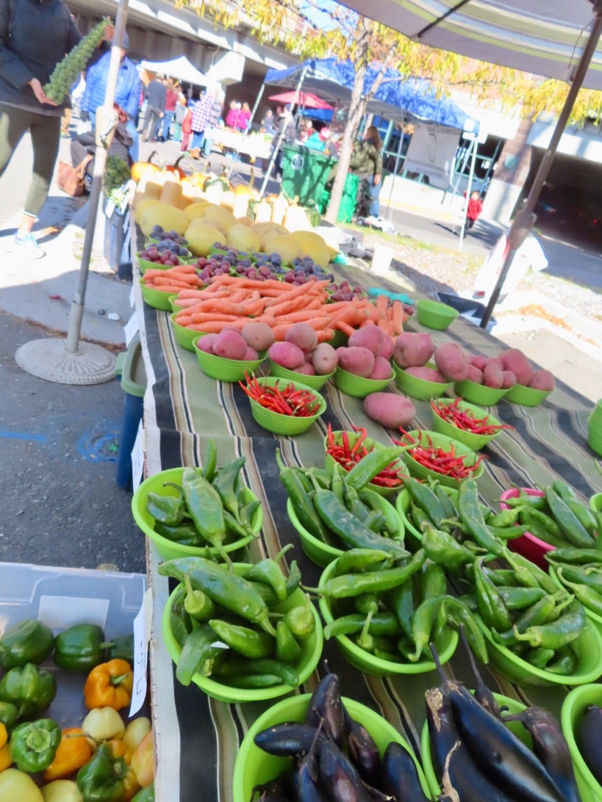 There is a standing wave in the river along the downtown boardwalk. We drove over to check that out and see if it would be worth getting wet. It looked cool but the 40 degree air and frigid water proved to be deterrent enough to keep me on shore. It was a sunny day though and we spotted the farmer’s market down the path along the river.