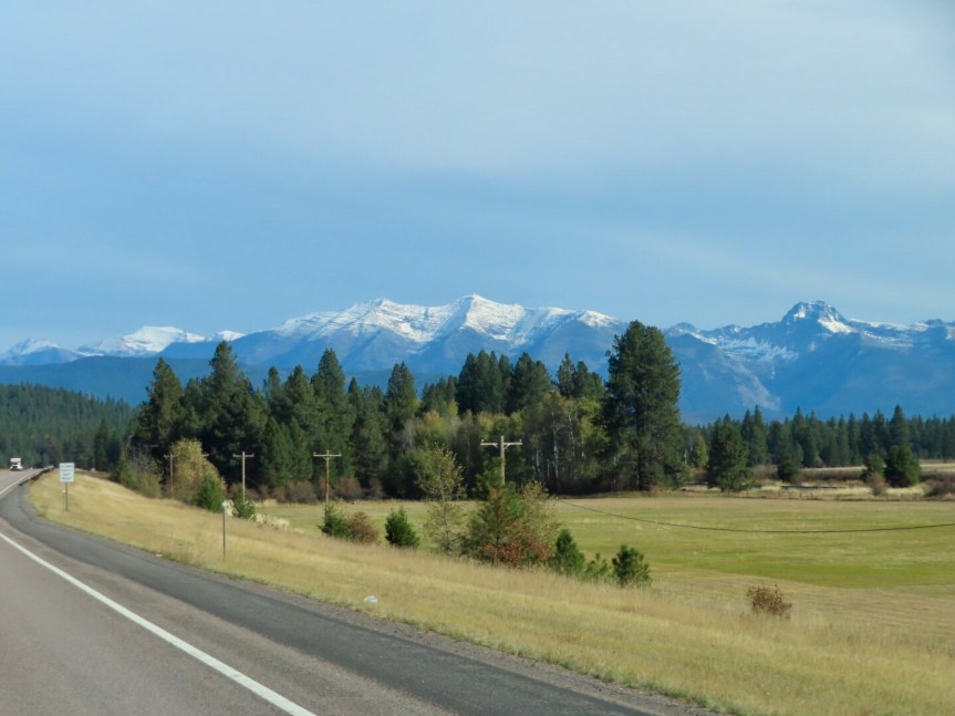 The final stretch from the National Bison Range to our destination at Trout Creek featured some of the most stunning landscape as we followed the banks of the Columbia River. There were signs warning to be alert to the bighorn sheep that frequent the area and it wasn’t long before we spotted some scrambling around on the steep, rocky slopes on the north side of the river. We entered the Kootenai National Forest and drove until we reached Thompson Falls where we made a grocery stop at the Harvest Supermarket.
