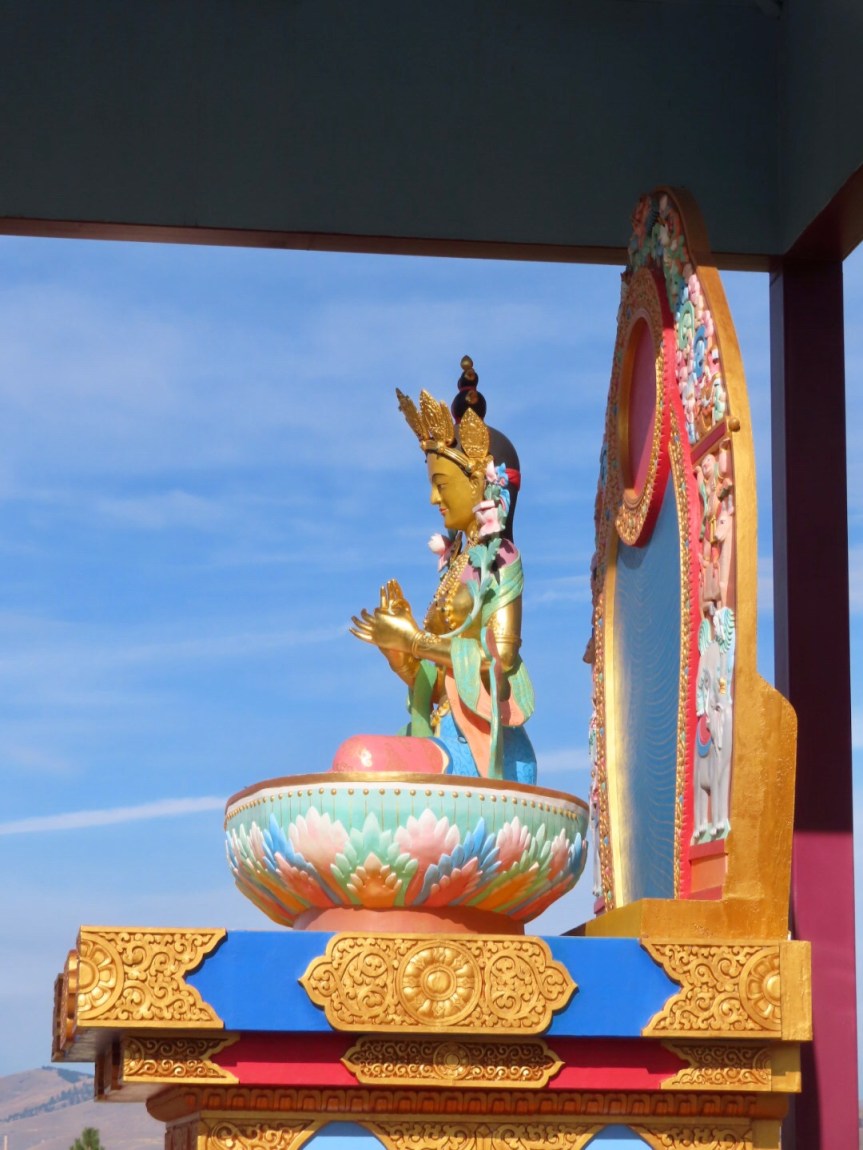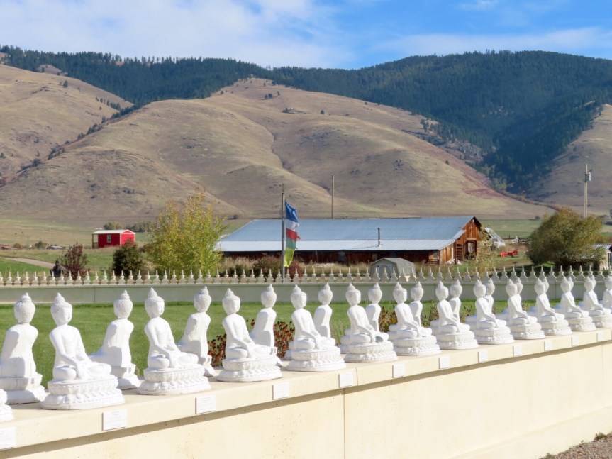 Not too many miles up the road from Missoula sits the Garden of One Thousand Buddhas, a large circle of stupas and Buddhas to do a walking meditation around. PJ had come across it in one of the tourist guides she picked up somewhere as we were roaming around town. Since it was on our route, we decided to stop in and have some quiet time on our way to Trout Creek.