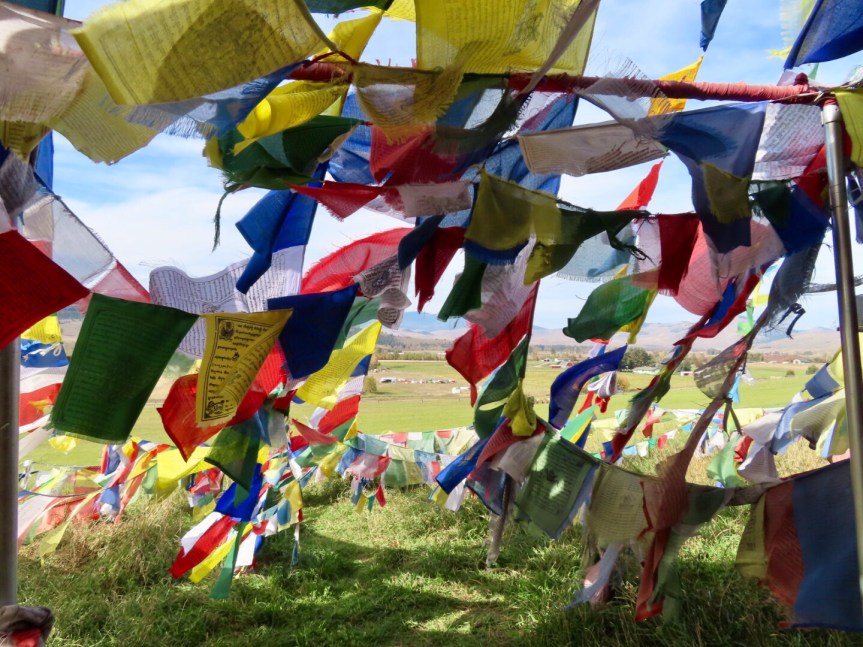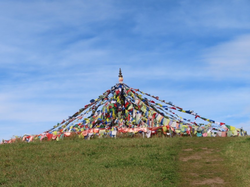 At the crest of a small rise, they had erected a tent like structure created entirely from streamers of prayer flags. PJ sat inside while I meditated with a circle of large statues overlooking a beautiful valley below. It was hours well spent to start a day of travel on the right foot.