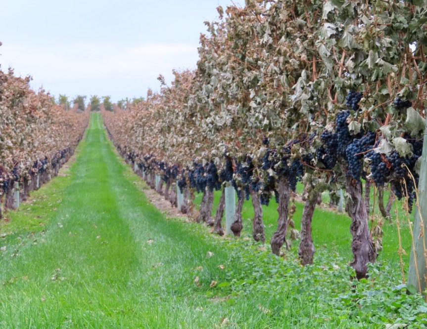 To get the blood moving in the afternoon, we broke out the bikes and went for a ride down the lakeshore to where the road ends at the U.S. border. We bundled up and cruised along the beach startling a few mallards that were strolling along the bike path. We hit the steep hill where the road turned left to parallel the international line and paperboyed our way up the incline to sneak a few grapes from the fully loaded vines at the vineyards.