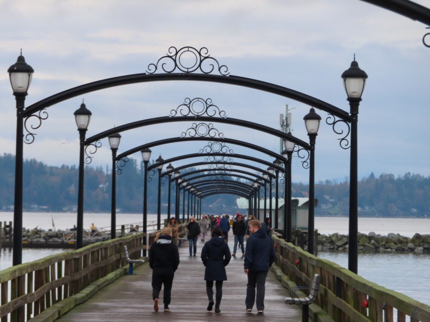 I set the GPS to lead me to the pier in White Rock. The drizzle and overcast kept things uncrowded but a few people were out and about. All parking in the beach area of White Rock is either permit only or pay to park. I grabbed a spot in a nearly empty beach lot and paid my fee then walked down the promenade to the pier.