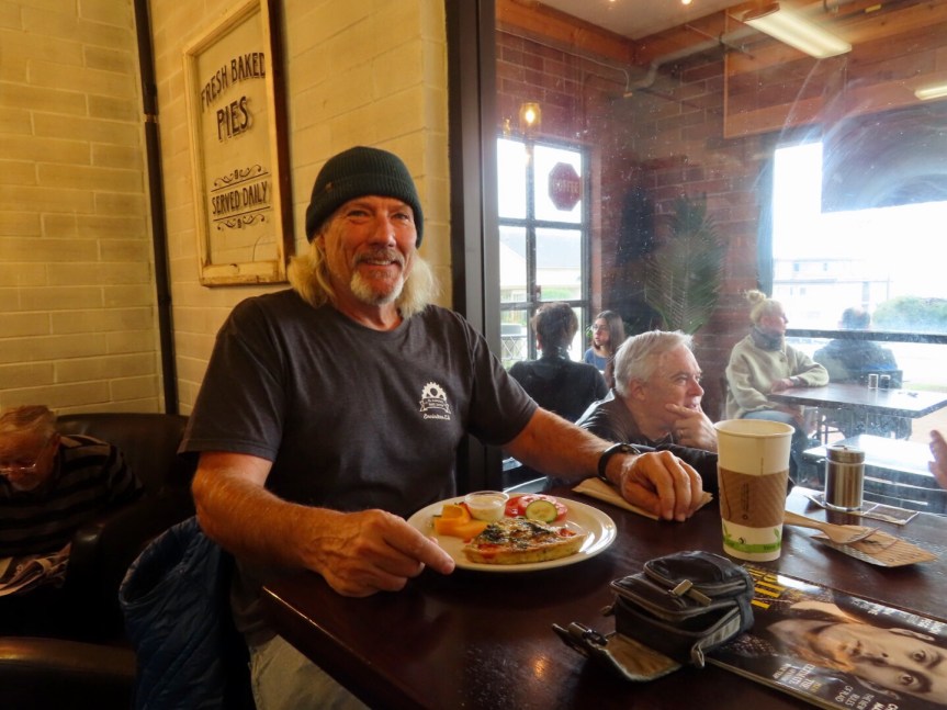 I found a cool local eatery, Laura’s Coffee Corner, and was lucky enough to find an open seat in the very popular restaurant. I ate a frittata and sipped a chai tea until it was time to hike down the block to the Freemason’s Lodge for the noon AA meeting. It was well attended with over forty people filling the hall. A great meeting with some cool folks. Afterwards, a few people lingered and we talked a while before I returned to the car and went looking for a grocery store.