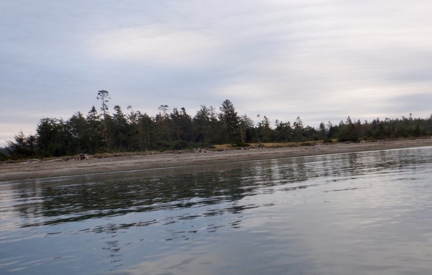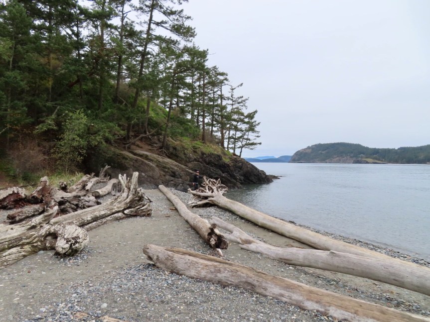 When I took Cali for a morning outing along the driftwood covered sands of Puget Sound, I noticed how calm and glassy the water was. I decided to get in a paddle on the Rosario Straight to get the day started. I grabbed the board and put in directly in front of the campground. I stroked my way south for a half an hour before returning to the more turbulent water by the narrows that go underneath the bridge. A pair of seals were tailing me from a safe distance as we moved beneath the watchful eyes of the snow covered Olympic peaks across the sound. I paddled part way out into the crossing to view the bridge but could feel the current getting stronger wanting to suck me down to the bridge with the incoming tide. I had to work hard to get back into safe water past the eddy by the campground beach.