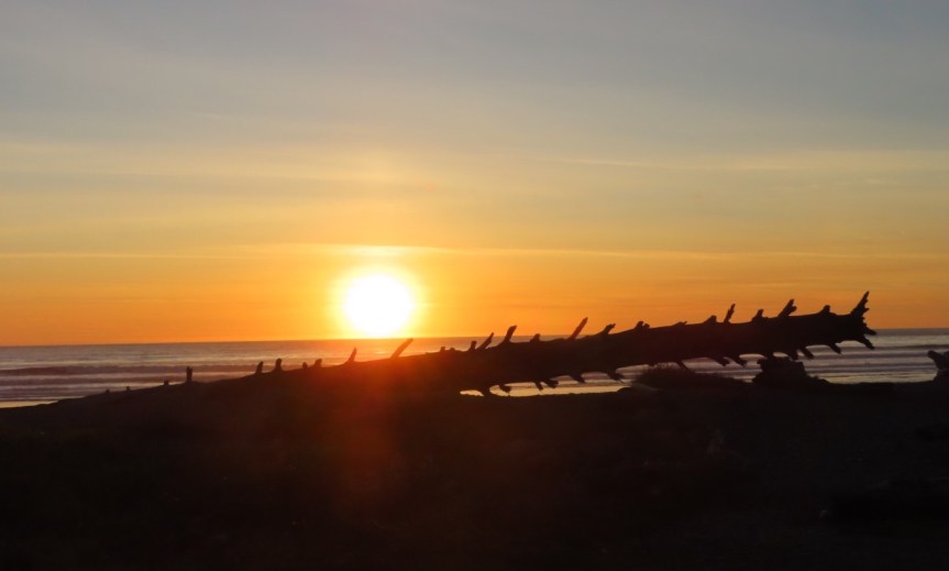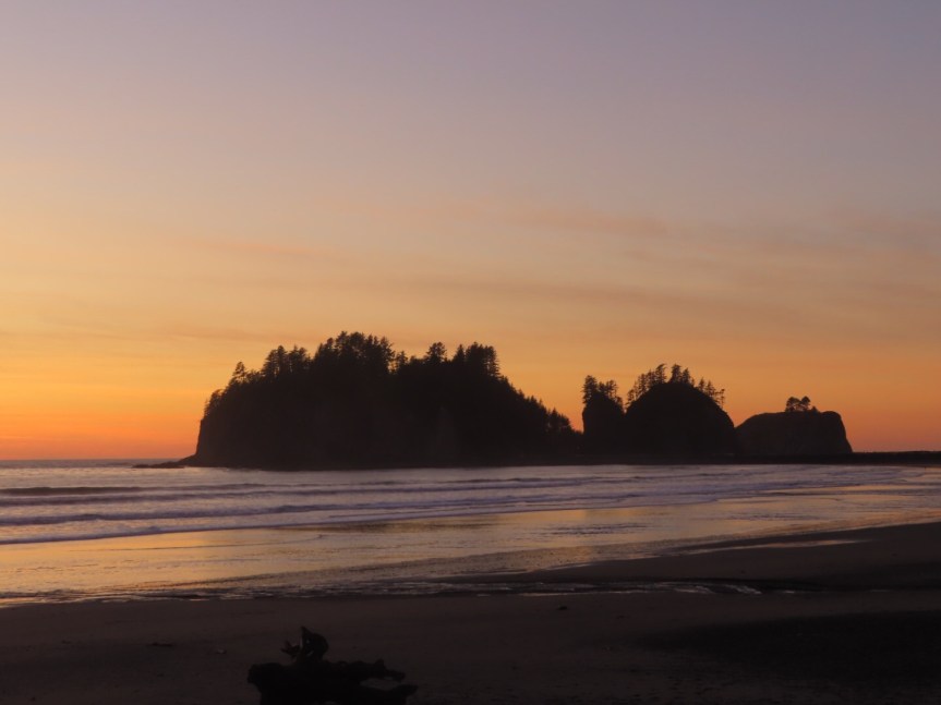 The rain and dampness we’ve been dealing with has caused a lot of condensation in the RV. We pulled a bunch of damp stuff out to set in the sun and are keeping things dry to avoid the dreaded mold invasion. We learned down in Jacksonville last winter to stay ahead of it. The weather dropped into the forties as night set in, so we moved inside and did the books to see how far over budget we’re running for October. There are three other campers down on this end and a few bolder adventurers hiked down the coast to camp outside on the beach. The wildness of the place reminds a little of northern Baja in the seventies, with ungroomed beaches left in their natural state and untamed surf battering the shore. A beautiful stretch of Pacific Coast. We’ve now come sea to shining sea from Nova Scotia to La Push, Washington.
