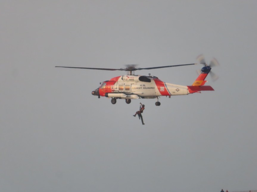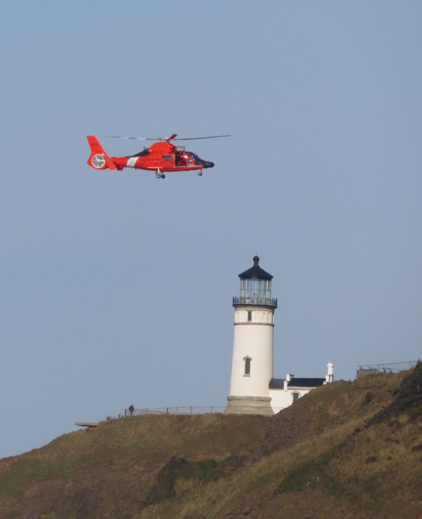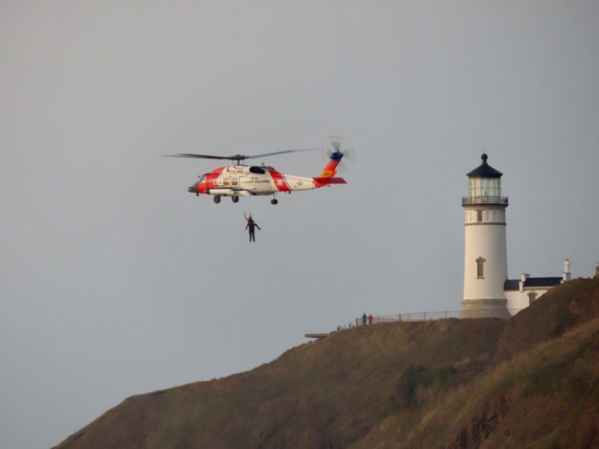 The Coast Guard have a large presence in the Columbia River area and this morning I saw a large contingent suiting up in wetsuits down at Waikiki getting ready for some in the water activity. After surfing, we could hear the rumble of a helicopter off of the point at North Head. Another crew was practicing cliff rescues on the rock walls below the lighthouse hauling up dummies on their cables into the helicopter. Exciting stuff.