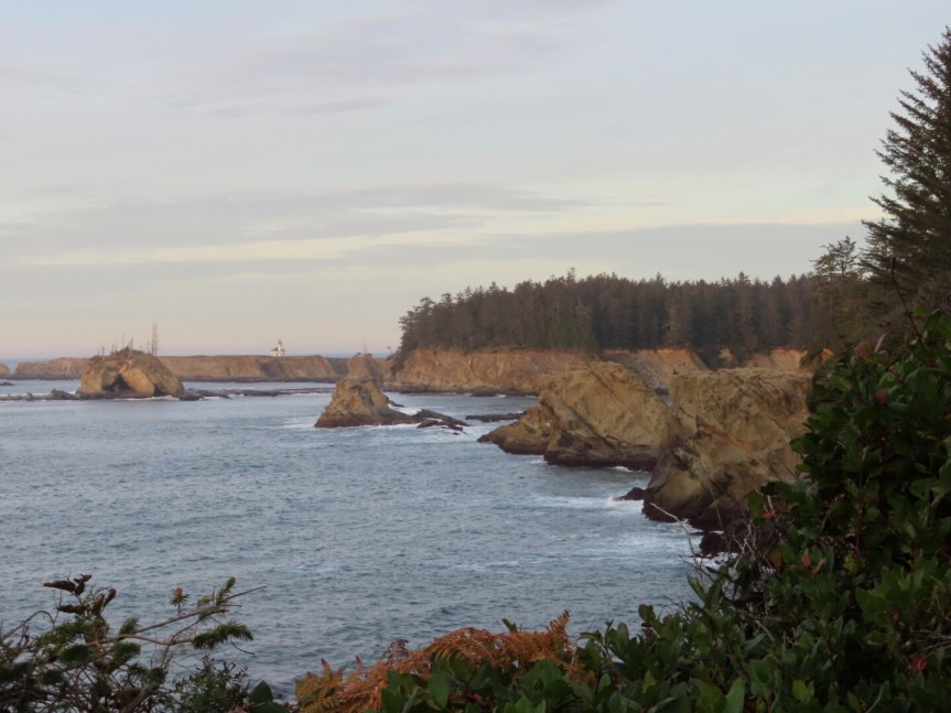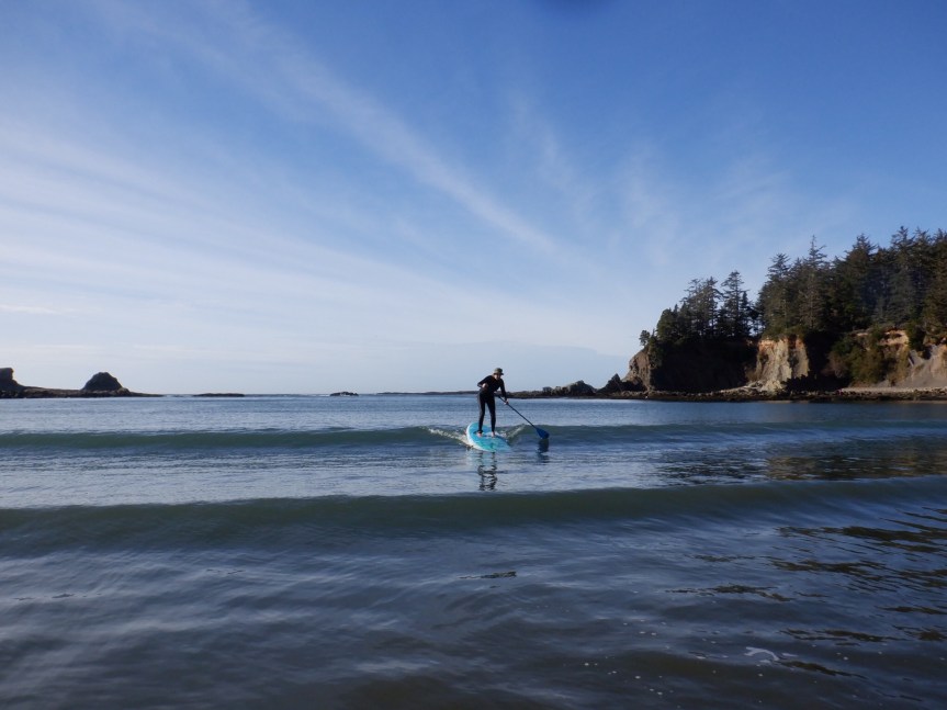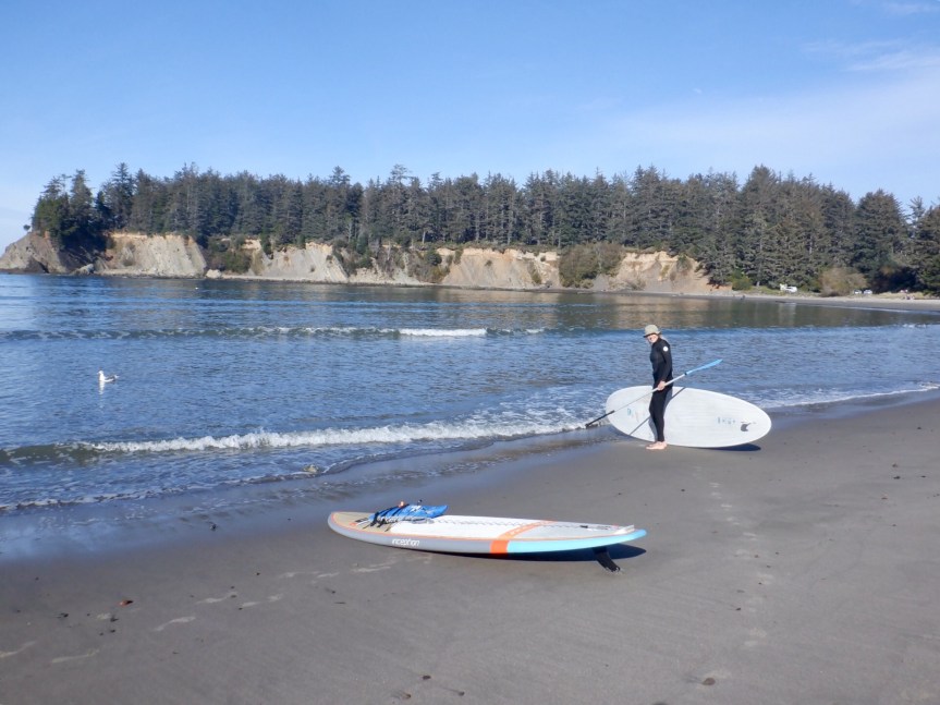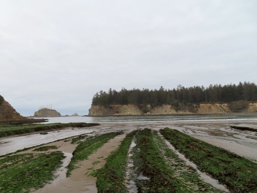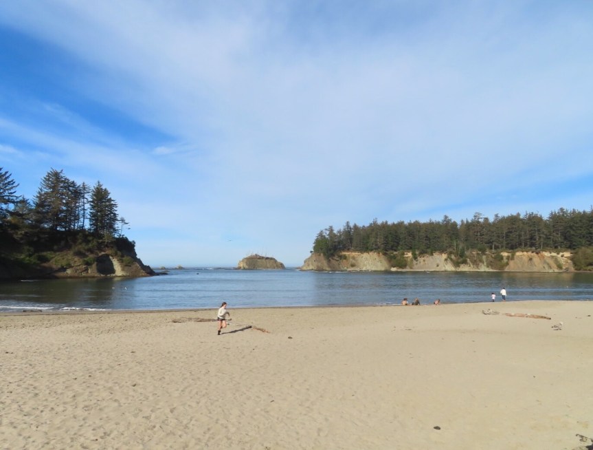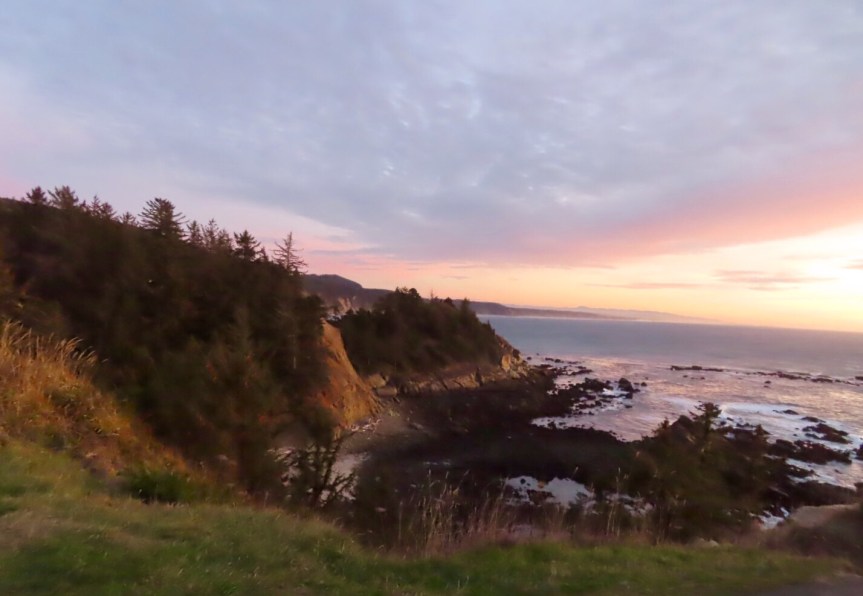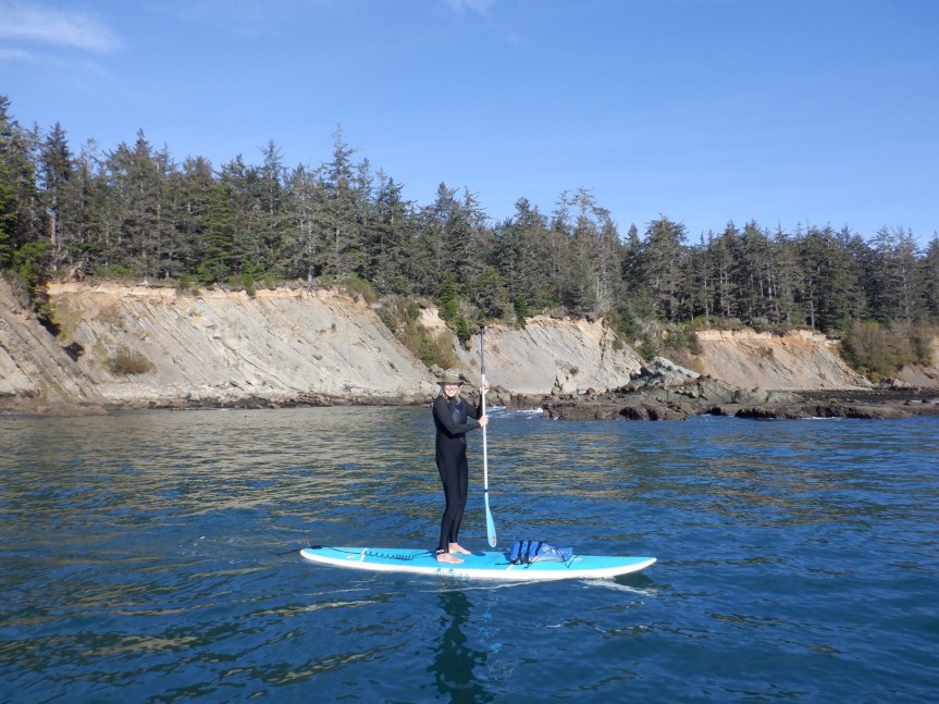 Beverly Beach was okay but the sun had disappeared and we weren’t really into it after being scolded by a ranger for not parking the way he would have preferred. It was a quick one night stand then it was down the coast highway to Sunset Bay just a short ways south of Coos Bay. The bay out front is beautiful and we are comfortable with the easy vibe of the place. So, an extra day was added for a paddle around the rocks.