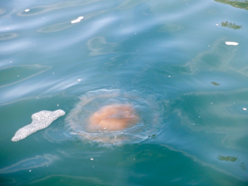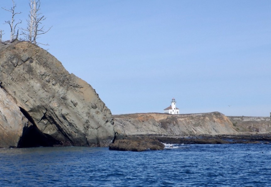 We were sleeping hard this morning and could have slept in more but Cali wasn’t having it. We finally got going and decided to stay one more day at Sunset Bay State Park to paddle the bay out front and explore around the rocky islands that dot the mouth of the bay. We haven’t had any internet for the past few weeks having to drive to places where we can get a signal in order to post or make calls. It’s been both good and bad. We left Washington a few days back and crossed the big bridge into Oregon. We’ve now been in 47 of the lower 48 states! The only hold out is Kansas, but we’re okay with that. I was actually in Kansas many years back but it doesn’t get a sticker if the RV doesn’t cross the border. PJ’s been to Alaska which is the only state I haven’t been in, so we’re each scoring 49 out of 50 on the number of states visited, not bad on my report card.