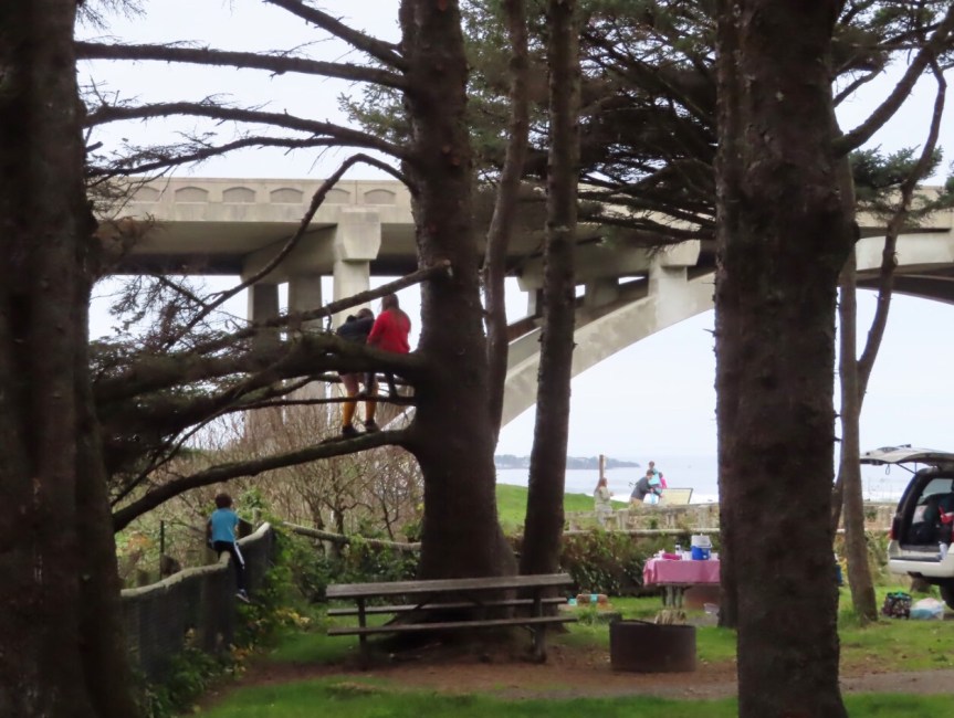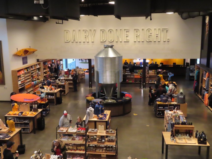 Our first night in Oregon found us at Beverly Beach, a long and wide stretch of sand a few hours south of the border. Our big entertainment for the day was a stop at the Tillamook Cheese Factory. We toured the giant facility and sampled some cheeses. It was kind of like the Hershey Chocolate factory in Pennsylvania but without the amusement ride. The employees were behind glass being watched all day like zoo animals by us tourists walking around on the upper floor. Don’t be picking your nose, young man! The smoked sharp cheddar was the bomb and we dutifully left with a bag of cheese.