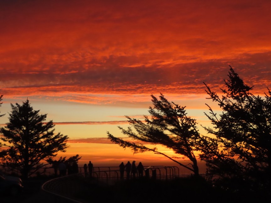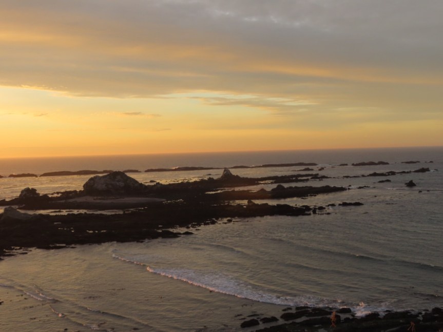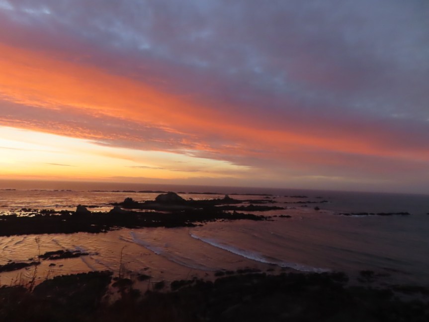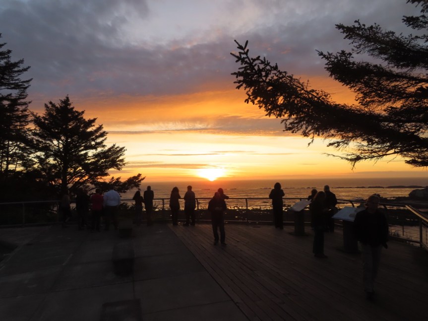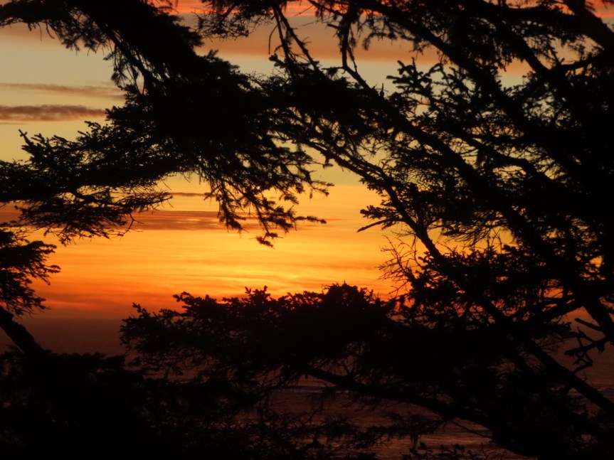 It was a popular spot, especially on a sunny Sunday evening of a three day weekend. We were joined by a gaggle of other tourists and locals waiting for the sun to go down. It was well worth the wait. Another magnificent sunset at Sunset Bay. We left the sea lions to their barking and drove a short ways further up to Point Arago.