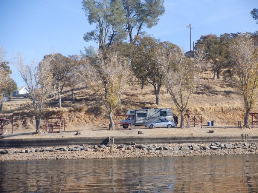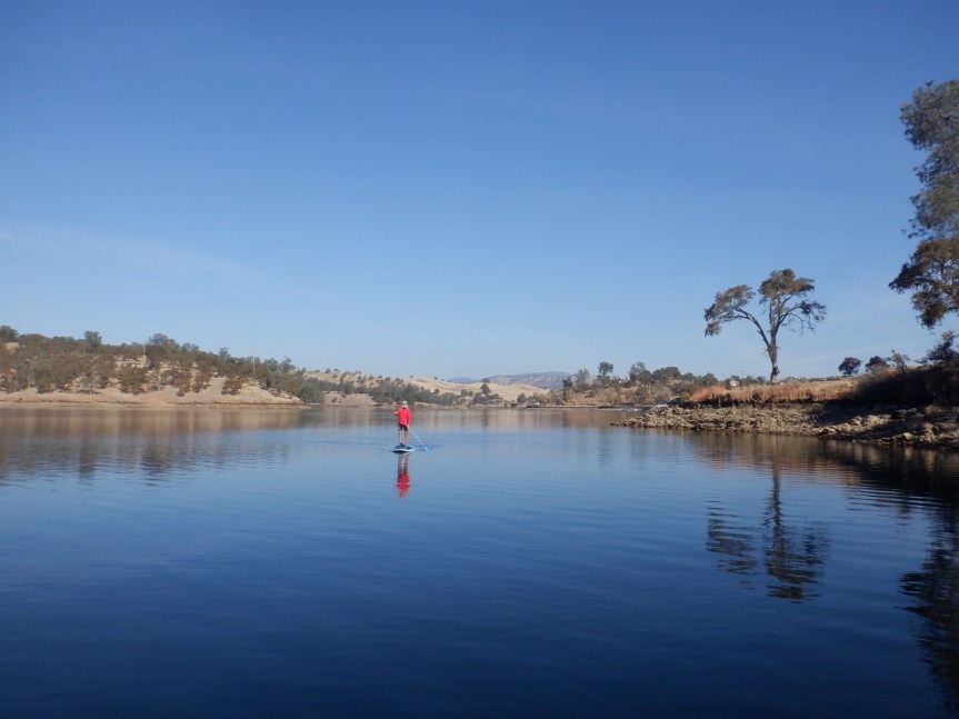 We cruised past camp and around the bend where there was a larger urban area with a group of houses lining the lake. We paddled a ways further then found a small cove where we sat on the boards and enjoyed the sun. It is the warmest we have been in quite some time. We jumped in the water for a little cooling off then stroked it on home to pack it up and head for Yosemite Valley.
