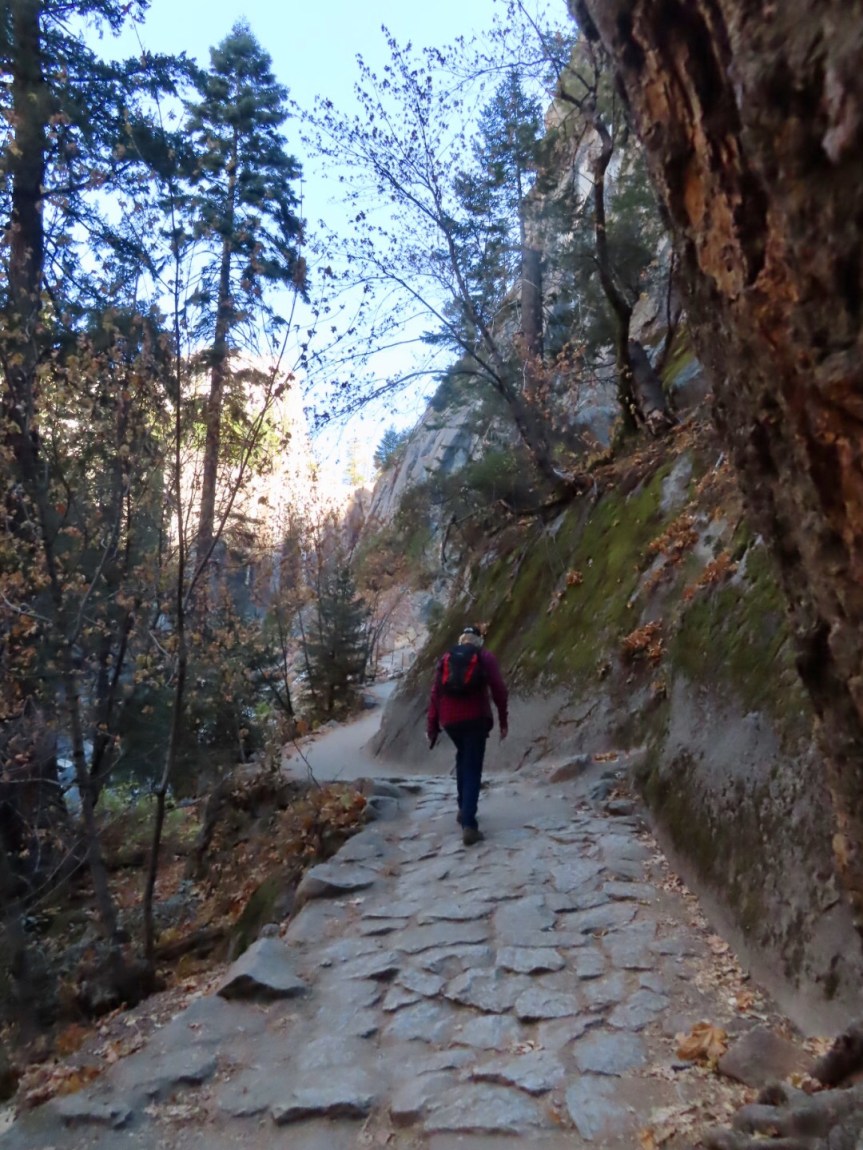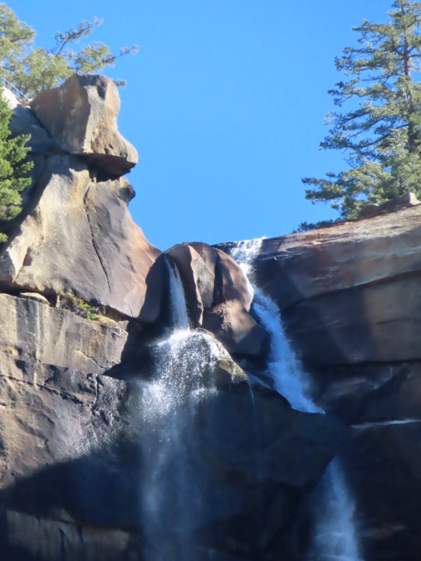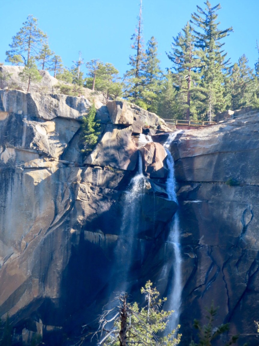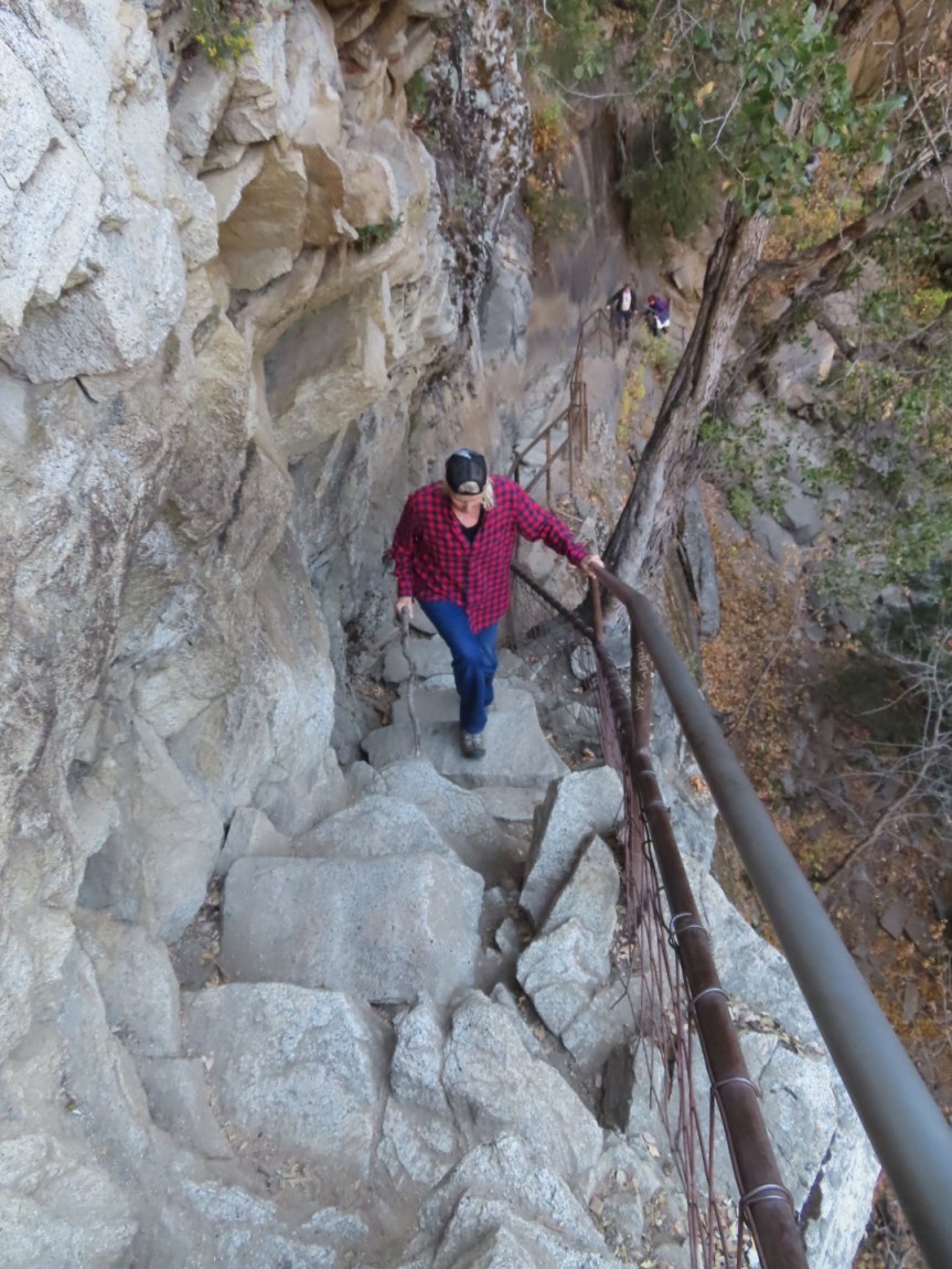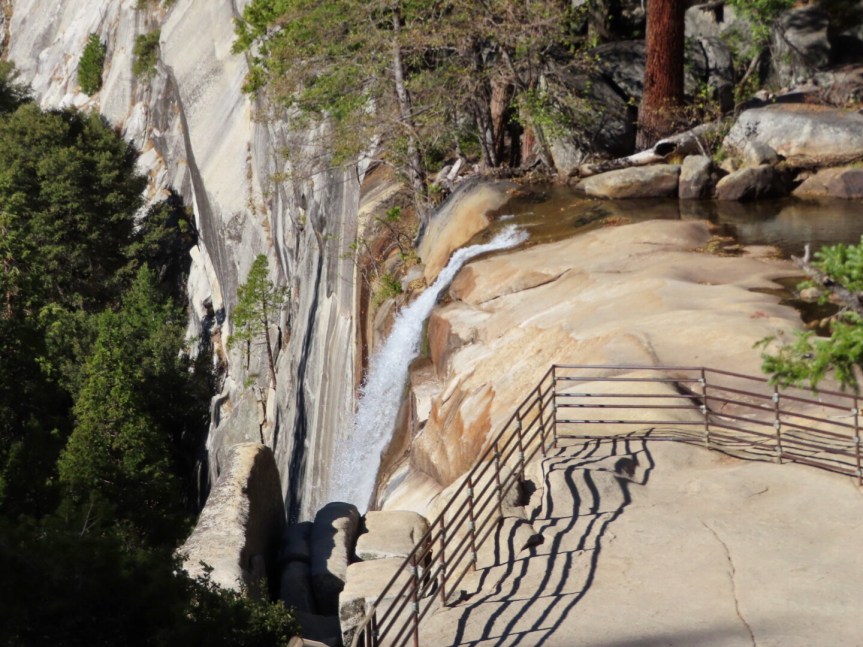 Nearer to the falls, it became steps that hugged the side of the canyon to bring us up to the mesa where the falls spill over the granite wall. We meandered around the paths and sat for a while next to the pool that fills right at the top of the falls. Water levels are really low right now and the falls themselves are pretty thin.