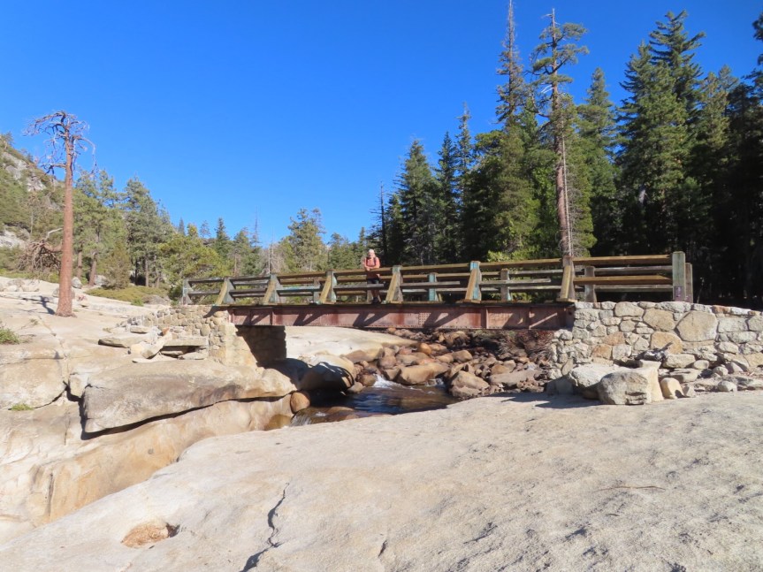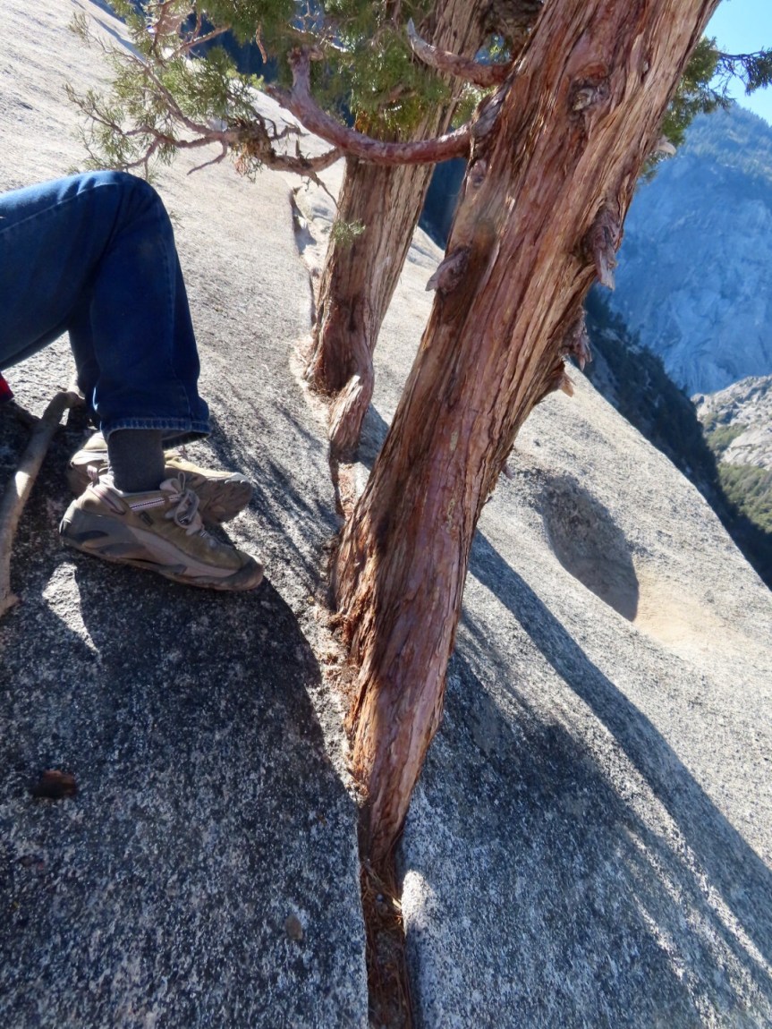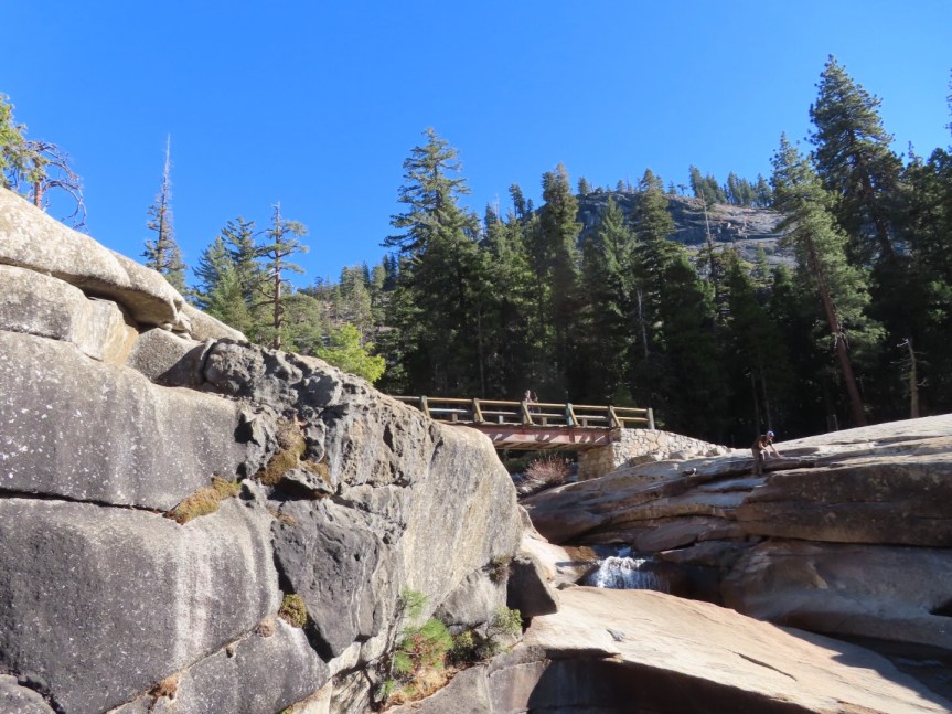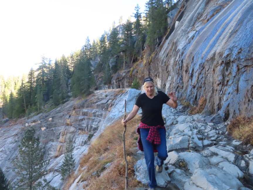 Today we penciled in a hike up to the nearby falls as our excursion around Yosemite. We had a relaxing morning goofing off in camp. One of the trees in camp is dropping sticky goo sap balls everywhere and it gets on your feet then glues big clumps of leaves and pine needles to the bottom of your shoes. Cali hates having her feet messed with so it’s a ongoing wrestling match to get her sap free.