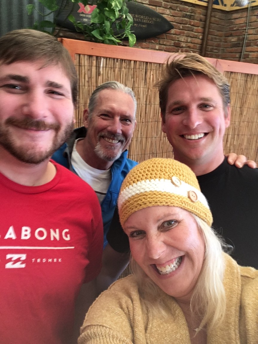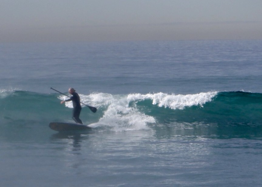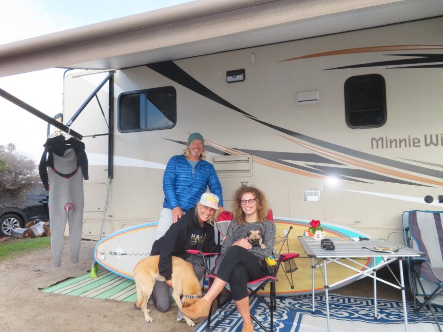 Wow, it’s been a busy holiday season. We spent the two weeks leading up to Christmas camped out on the bluff overlooking the Pacific at South Carlsbad State Beach. With the exception of a few rainy days towards the end, it was sunny and mild most of the time there. We paddled in the surf and rode our bikes around north county. PJ got to where she was standing up regularly on the little waves out front.